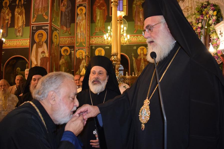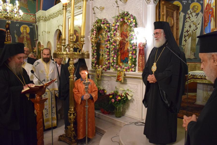 Κατά τη διάρκεια του μεθέορτου εσπερινού ο Θεοφιλέστατος Επίσκοπος Ερυθρών κ. Κύριλλος ανέγνωσε ενώπιον του Σεβασμιωτάτου Μητροπολίτου Ιλίου, Αχαρνών και Πετρουπόλεως κ. Αθηναγόρου απαντητική επιστολή και ευεργετήριο γράμμα του Παναγιωτάτου Οικουμενικού Πατριάρχου κ. Βαρθολομαίου σχετικά με την επίδοση του οφφικίου του Πρωτοπρεσβυτέρου του Οικουμενικού Θρόνου στον πρόεδρο του Εκκλησιαστικού Συμβουλίου του Ναού, π. Εμμανουήλ Σέρβο.
