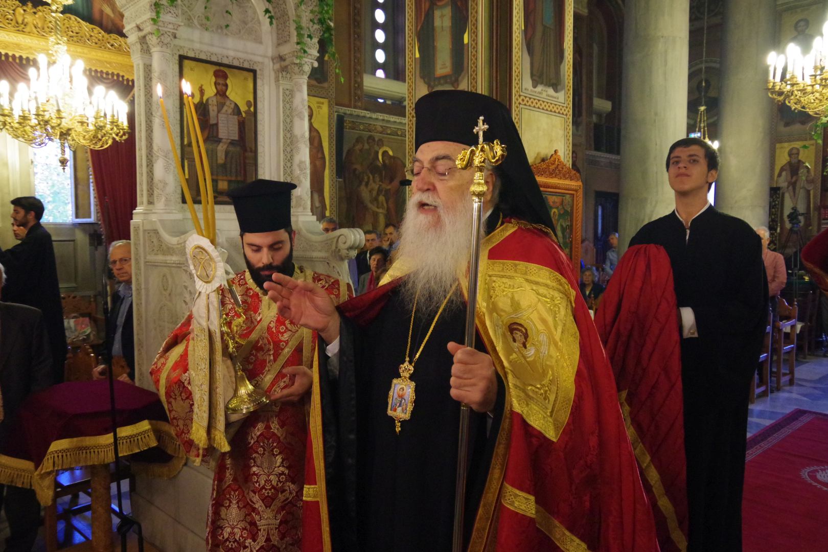 Στο αρχιερατικό συλλείτουργο προεξήρχε ο Σεβασμιώτατος Μητροπολίτης Ιλίου κ. Αθηναγόρας, με συλλειτουργούς τους Σεβασμιωτάτους Μητροπολίτες Περιστερίου κ. Κλήμη και Κηφισίας κ. Κύριλλο.