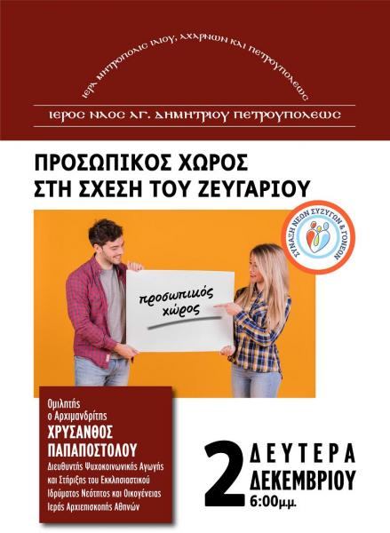 Ομιλία «Προσωπικός χώρος στη σχέση του ζευγαριού»