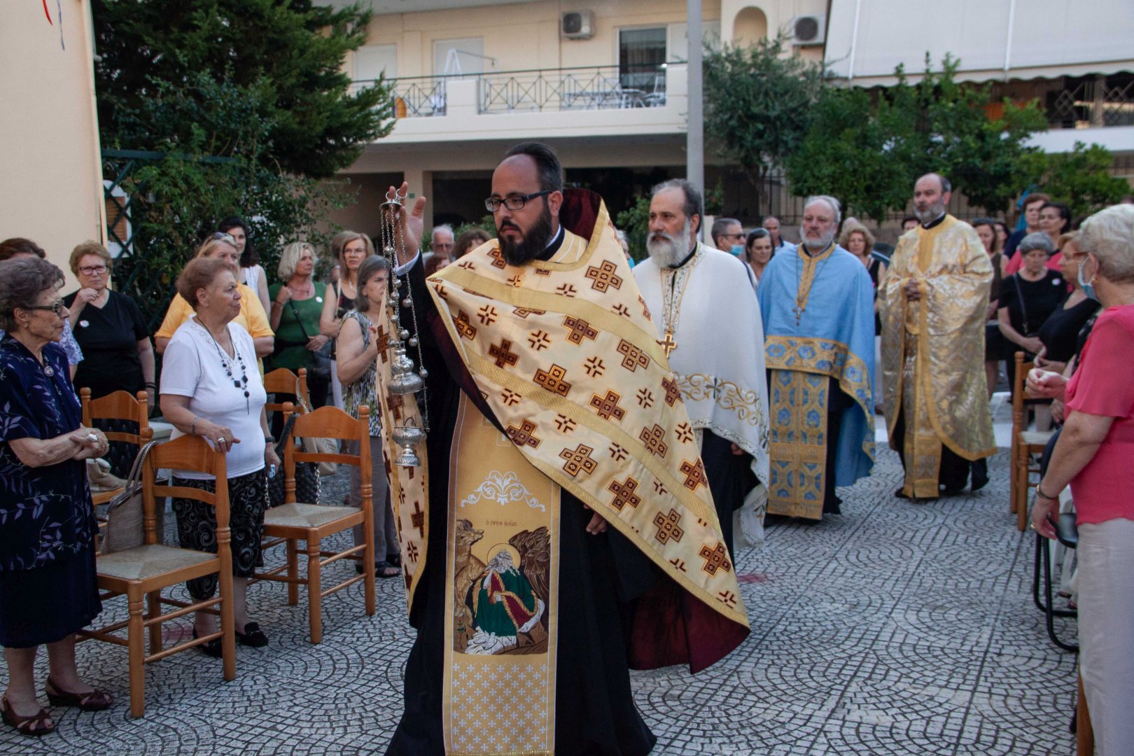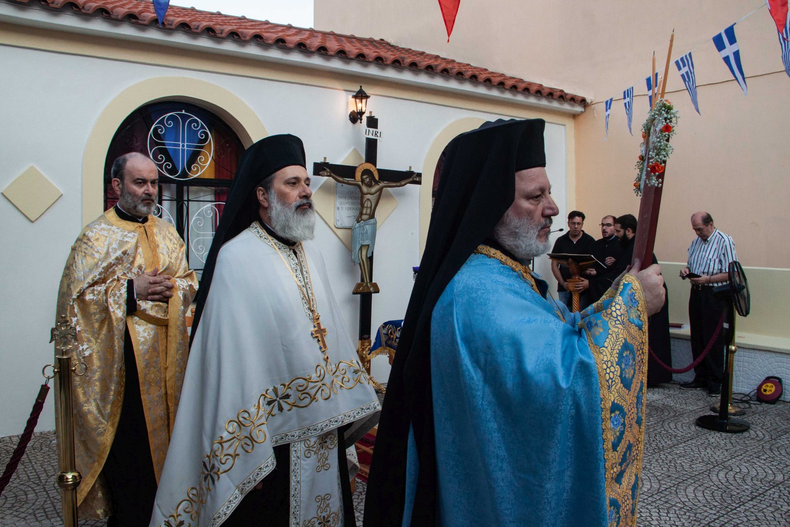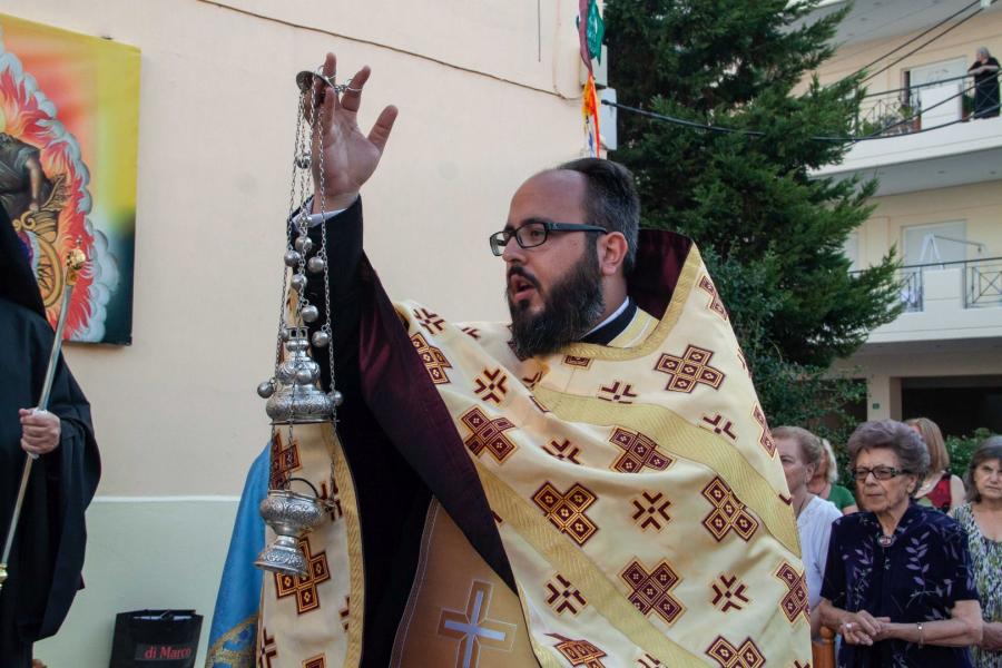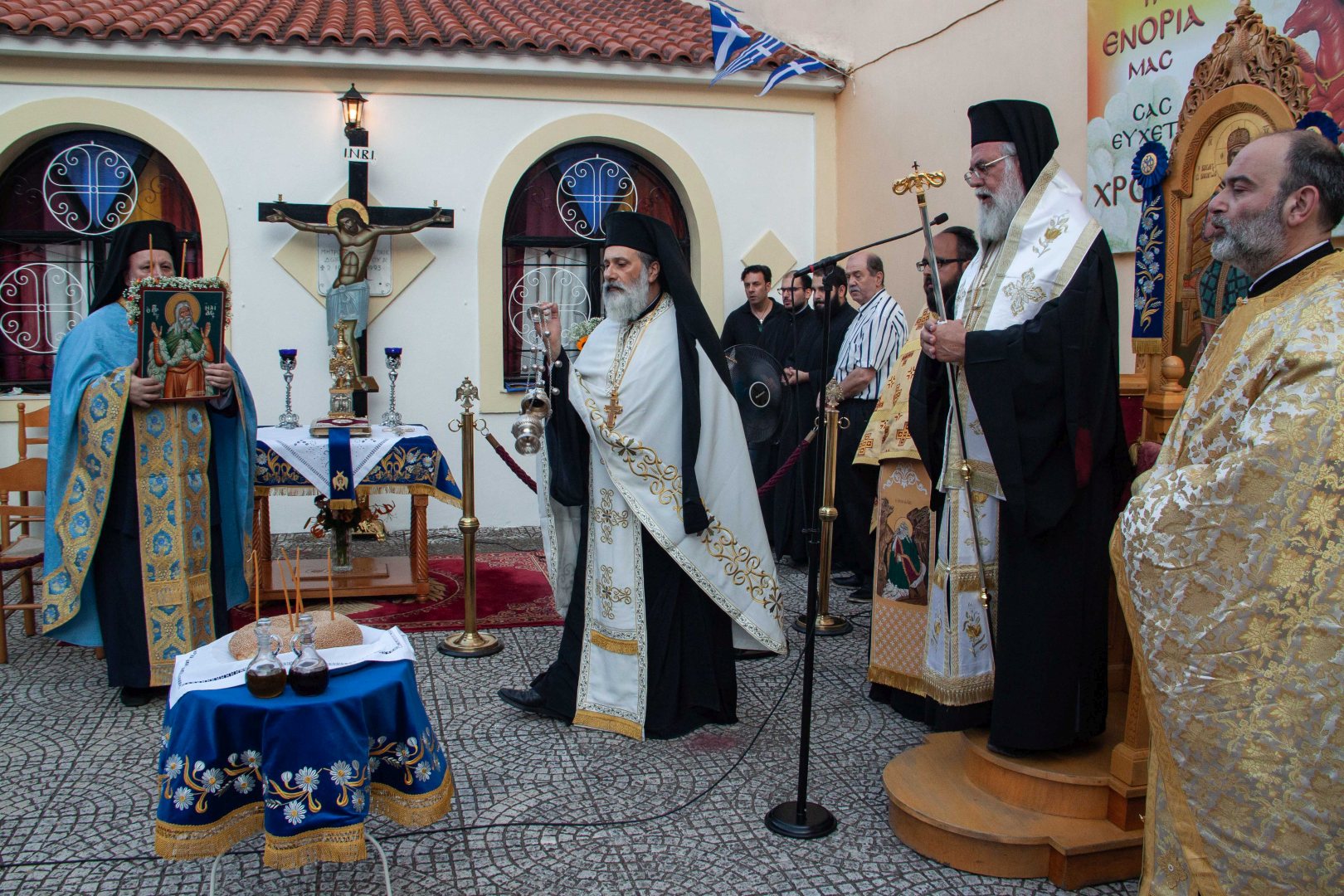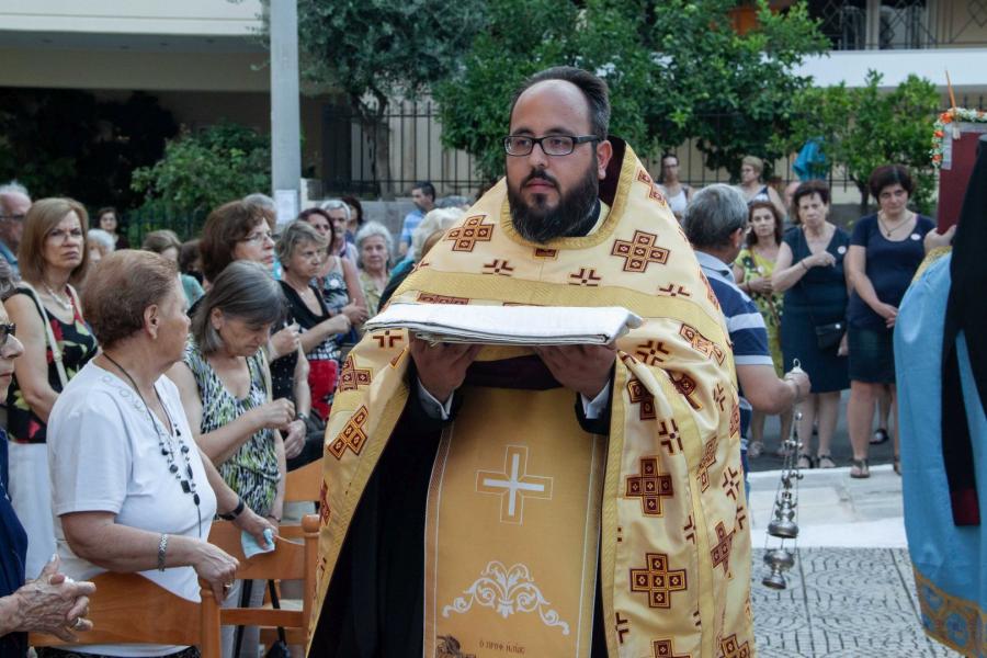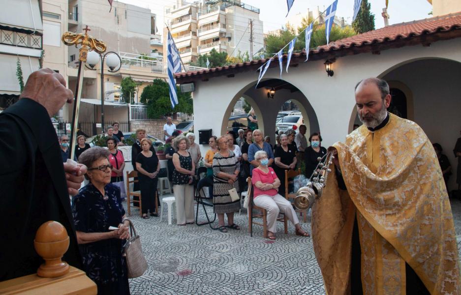 Ο εσπερινός τελέστηκε στον προαύλιο χώρο του ναού με τη συμμετοχή δεκάδων πιστών που προσήλθαν ευλαβικά.