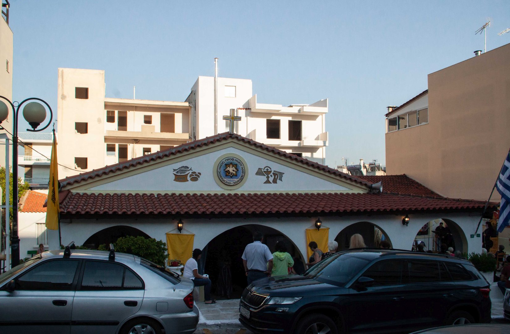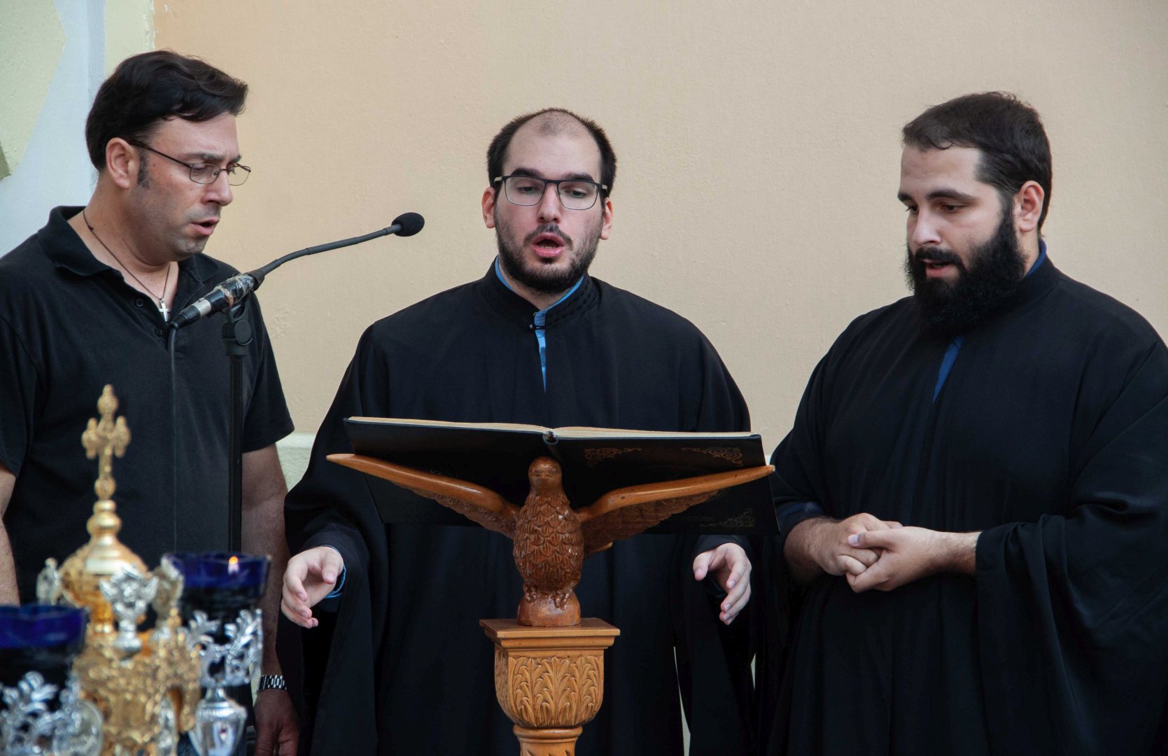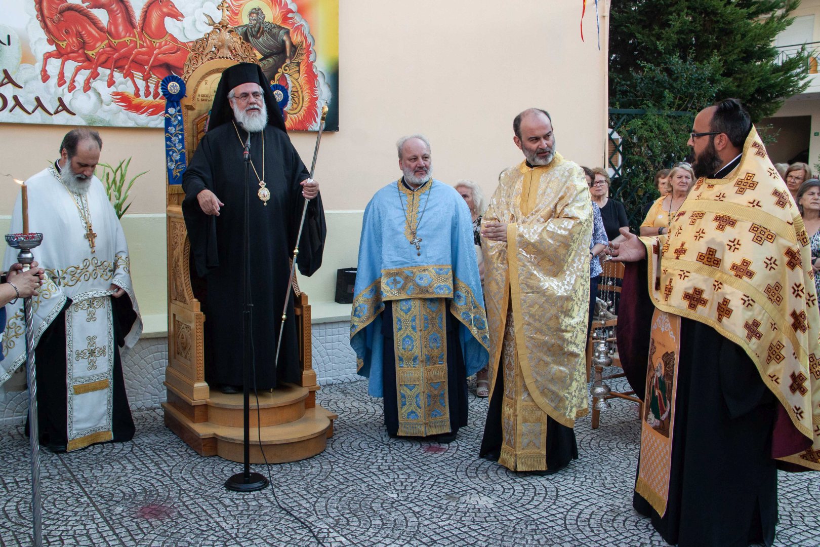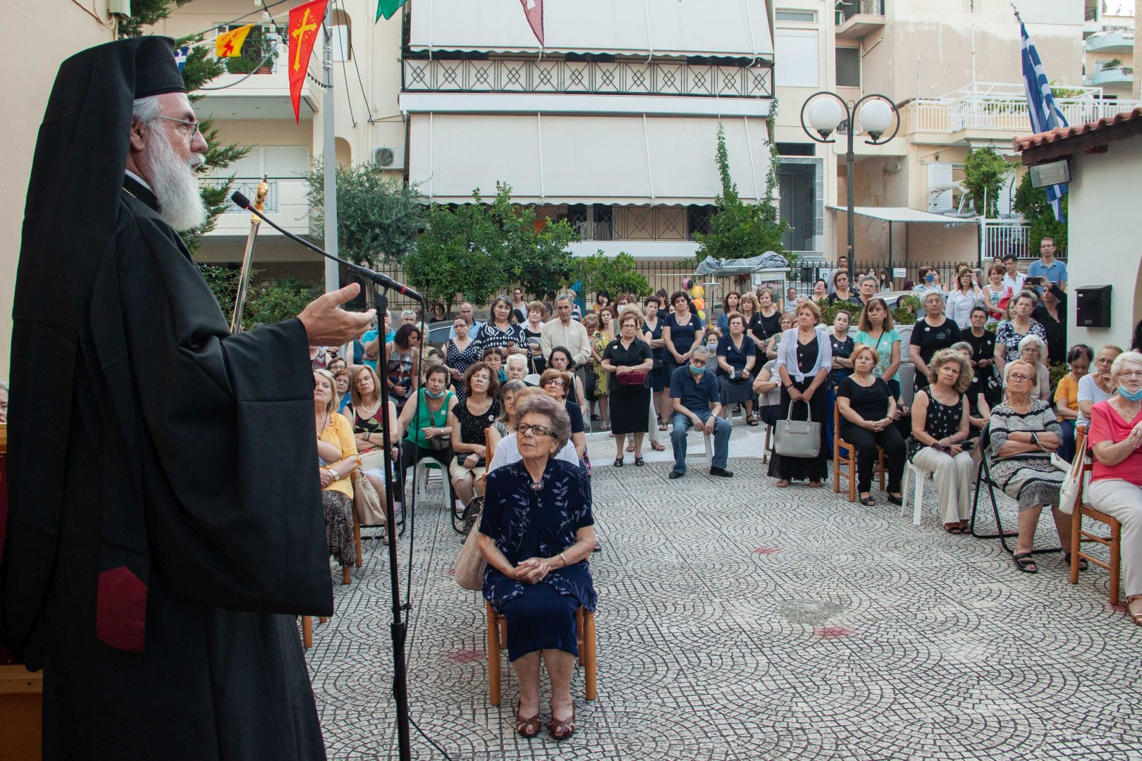Ο εσπερινός τελέστηκε στον προαύλιο χώρο του ναού με τη συμμετοχή δεκάδων πιστών που προσήλθαν ευλαβικά.