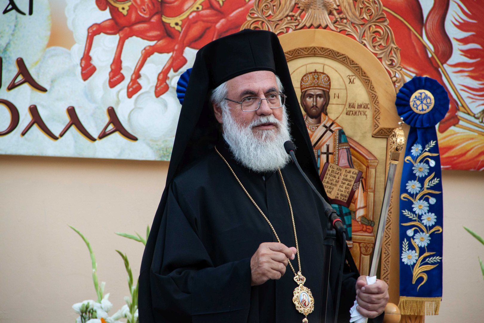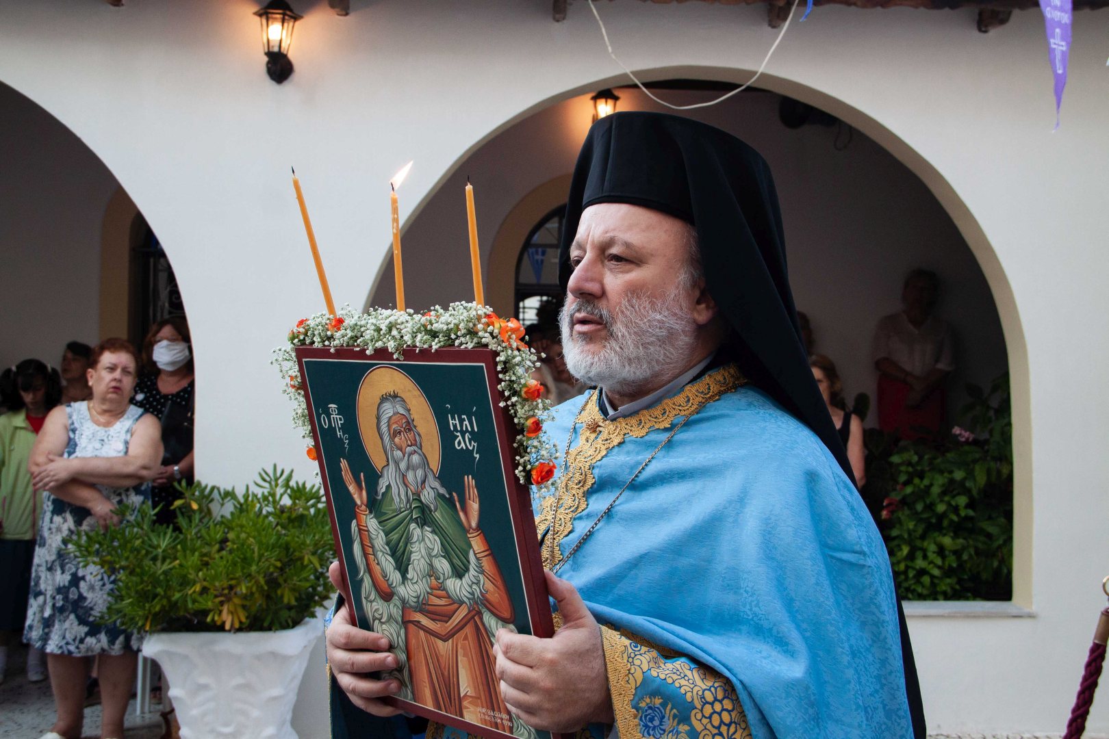 Στη σύντομη ομιλία του ο κ. Αθηναγόρας τόνισε πως «ο προφήτης Ηλίας είναι επίγειος άγγελος και ουράνιος άνθρωπος. Με τη ζωή του εικονίζει ένα άλλο πρόσωπο, τον Χριστό, που θα έρθει και θα είναι αγγελιοφόρος του Θεού και θα φέρει το μήνυμα της σωτηρίας».