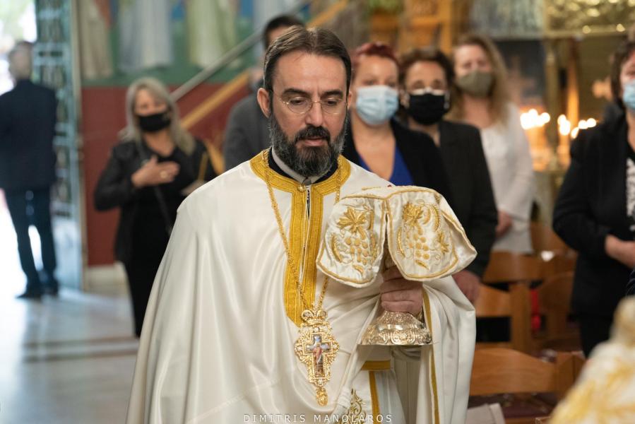 Με τον Σεβασμιώτατο Μητροπολίτη Ιλίου, Αχαρνών και Πετρουπόλεως κ. Αθηναγόρα, συλλειτούργησε ο Πρωτοσύγκελλος της Μητροπόλεως, Αρχιμ. Νικόδημος Αθανασίου, πρόεδρος του Εκκλησιαστικού Συμβουλίου της ενορίας.
