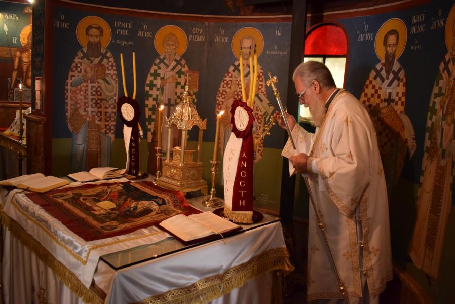 Στην ομιλία του ο Σεβασμιώτατος, αναφερόμενος στο τροπάριο «Σὲ τὸν ὡς Θεὸν ἐκ τάφου, ἀναστάντα Χριστόν, οὐ βλεφάροις ἰδόντες, ἀλλὰ καρδίας πόθῳ πεπιστευκότες, ἐν ὕμνοις μεγαλύνομεν», εξήγησε πως η εξαγγελία του αναστάντος Χριστού στον Απόστολο Θωμά έχει γίνει πράξη, καθώς είμαστε μακάριοι, αφού με πόθο καρδιάς πιστεύουμε σε Εκείνον, και νιώθουμε ταυτόχρονα την πνευματική Του παρουσία αλλά και την με το Σώμα και Αίμα παρουσία Του, μέσα σε κάθε Θεία Λειτουργία.