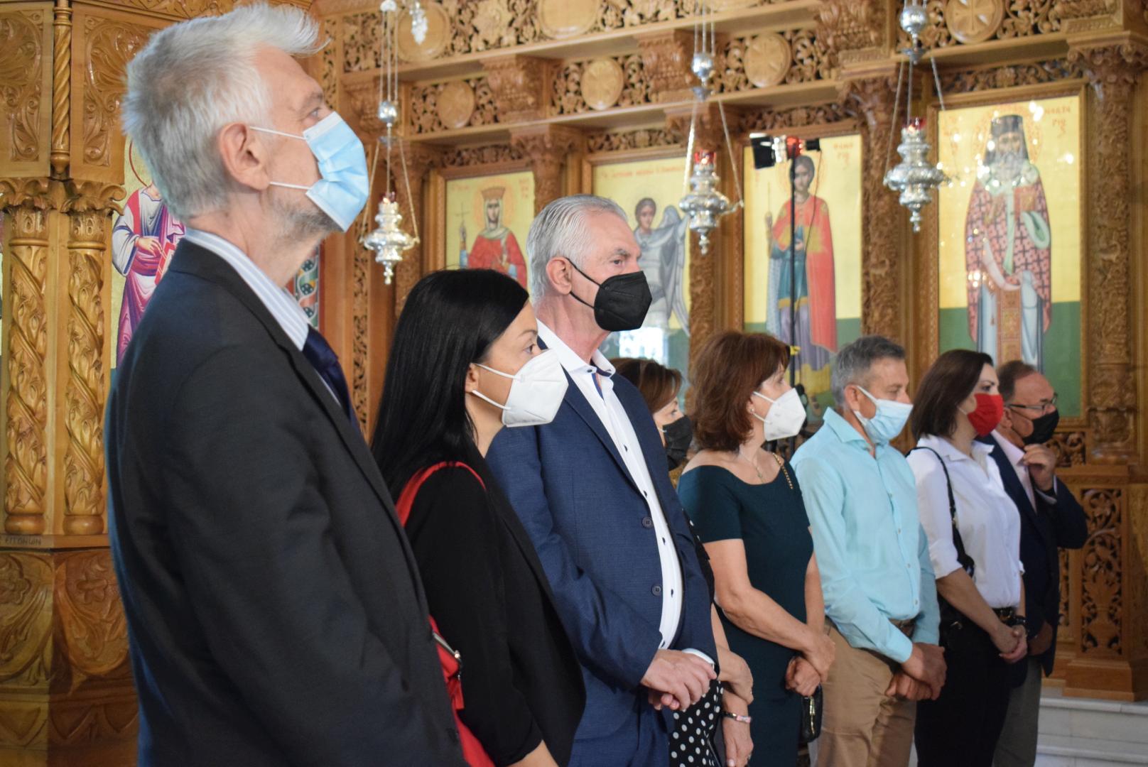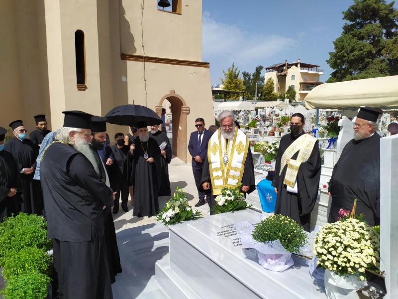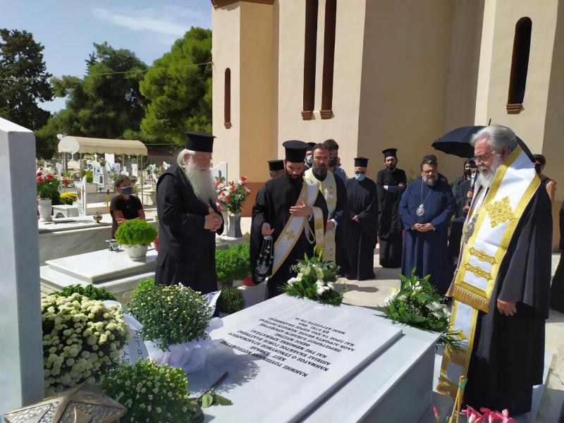 Στην επιμνημόσυνη δέηση συμμετείχε και ο Σεβασμιώτατος Μητροπολίτης Κηφισίας κ. Κύριλλος, ενώ όλοι οι αρχιερείς και επίσημοι, μαζί με τον λαό, μετέβησαν στον κοιμητήριο Περιστερίου, ώστε να τελέσουν το νεκρώσιμο τρισάγιο επί του μνήματος.