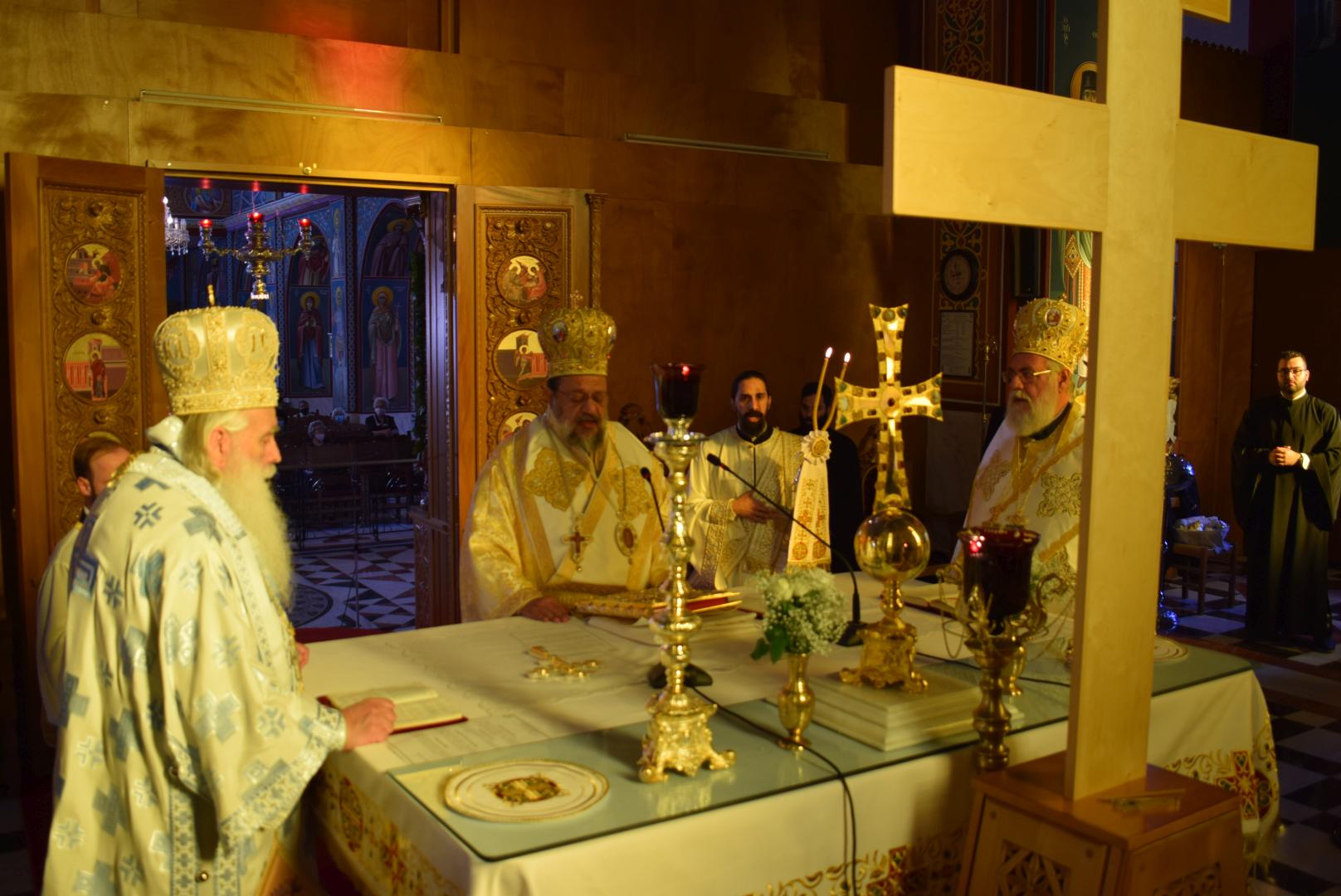 Στον Όρθρο και τη Θεία Λειτουργία χοροστάτησε ο Σεβασμιώτατος Μητροπολίτης Μεσσηνίας κ. Χρυσόστομος, ενώ συλλειτούργησαν ο Σεβασμιώτατος Μητροπολίτης Αργολίδος κ. Νεκτάριος και ο τοποτηρητής της Ι.Μ. Περιστερίου Σεβασμιώτατος Μητροπολίτης Ιλίου κ. Αθηναγόρας.