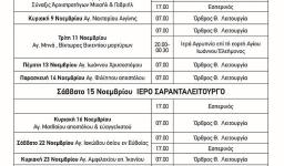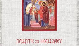 Την Πέμπτη 20 Νοεμβρίου 2025, ώρα 21:00, θα τελεστεί βραδινή Θεία Λειτουργία επί τη εορτή των Εισοδίων της Υπεραγίας ημών Θεοτόκου και Αειπαρθένου Μαρίας, στον Ιερό Ναό Προφήτου Ηλιού Πετρουπόλεως.