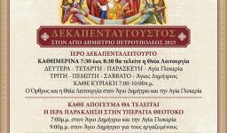 Καθημερινή τέλεση της Θείας Λειτουργίας και Ιερά Παράκληση καθ' όλη την περίοδο του Δεκαπενταύγουστου θα τελούνται στον Ιερό Ναό Αγίου Δημητρίου Πετρουπόλεως και το παρεκκλήσιο της Αγίας Γλυκερίας.
