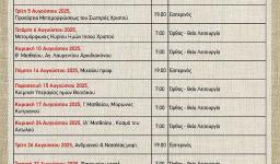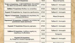 Πρόγραμμα ακολουθιών Αυγούστου 2025 ενορίας Αγ. Τρύφωνος Καματερού