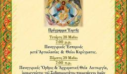 Με Αναστάσιμη πνευματική χαρά και ιδιαίτερη τιμή σας προσκαλούμε στην πανήγυρη του Ιερού μας Ναού με την ευκαιρία της εορτής των πολιούχων και προστατών Αγίων θεοστέπτων Βασιλεών και Ισαποστόλων Κωνσταντίνου και Ελένης, σύμφωνα με το εξής πρόγραμμα: