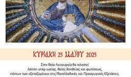 Δέηση υπέρ υγείας, θείας βοηθείας και φωτίσεως πάντων των εξεταζομένων στις Πανελλαδικές και προαγωγικές εξετάσεις θα τελεστεί κατά την Θεία Λειτουργία της Κυριακή 25 Μαΐου 2025, στον Ι.Ν. Αγίας Τριάδος Πετρουπόλεως.