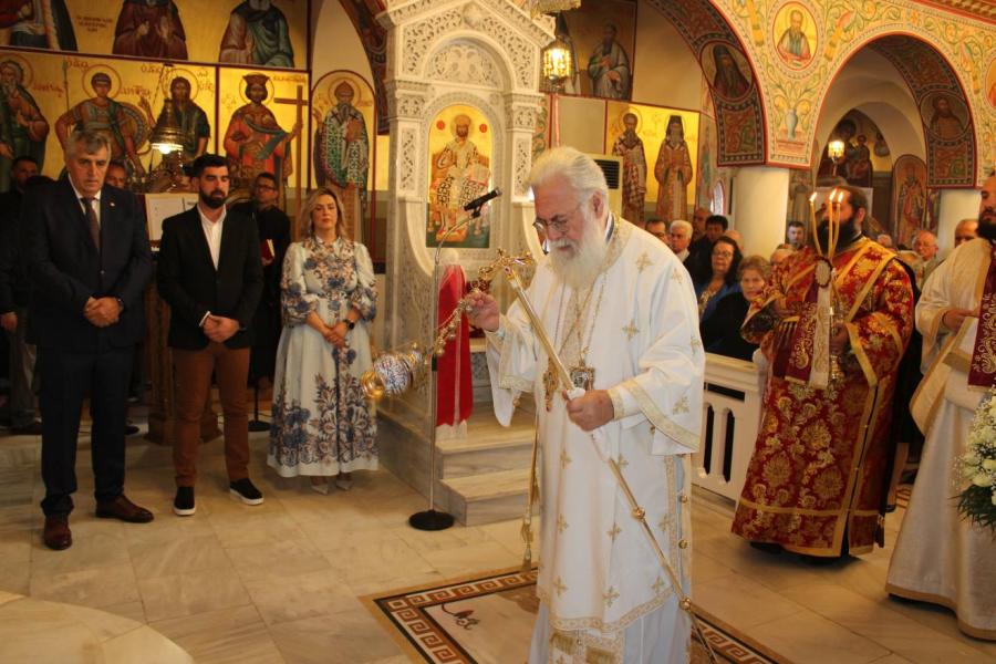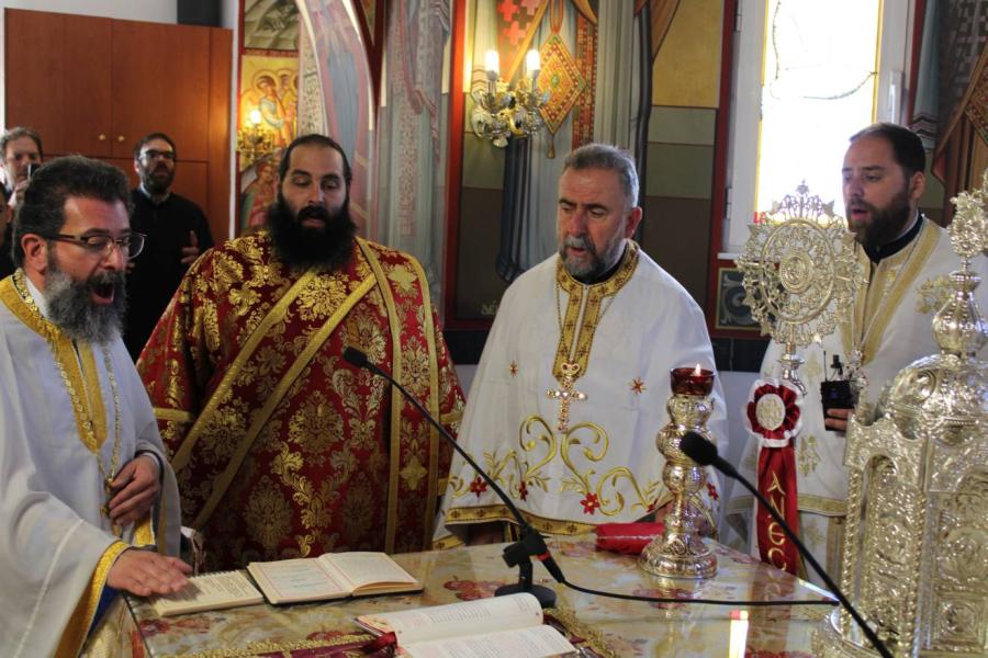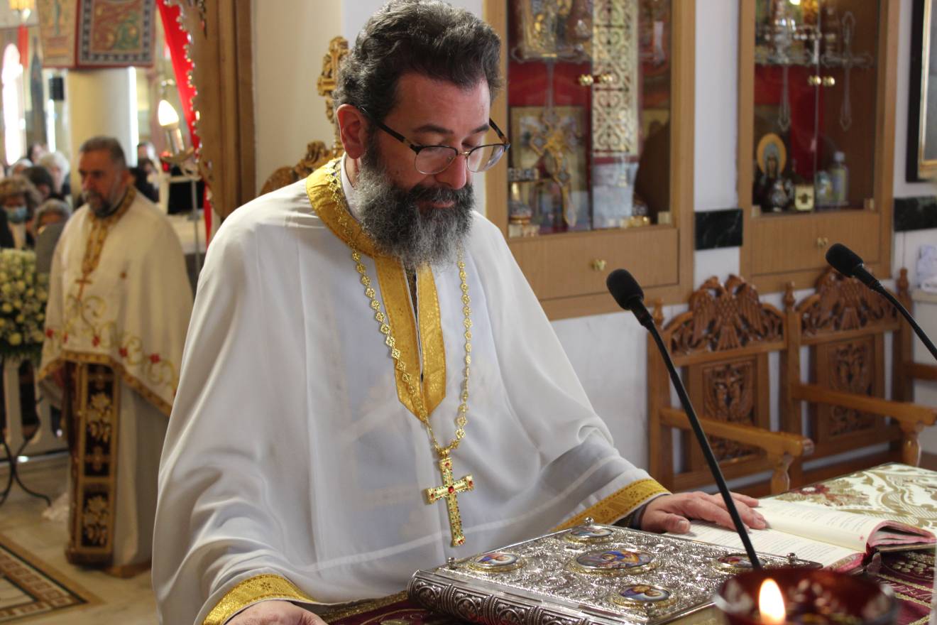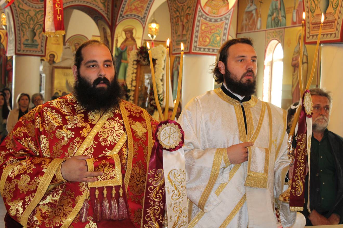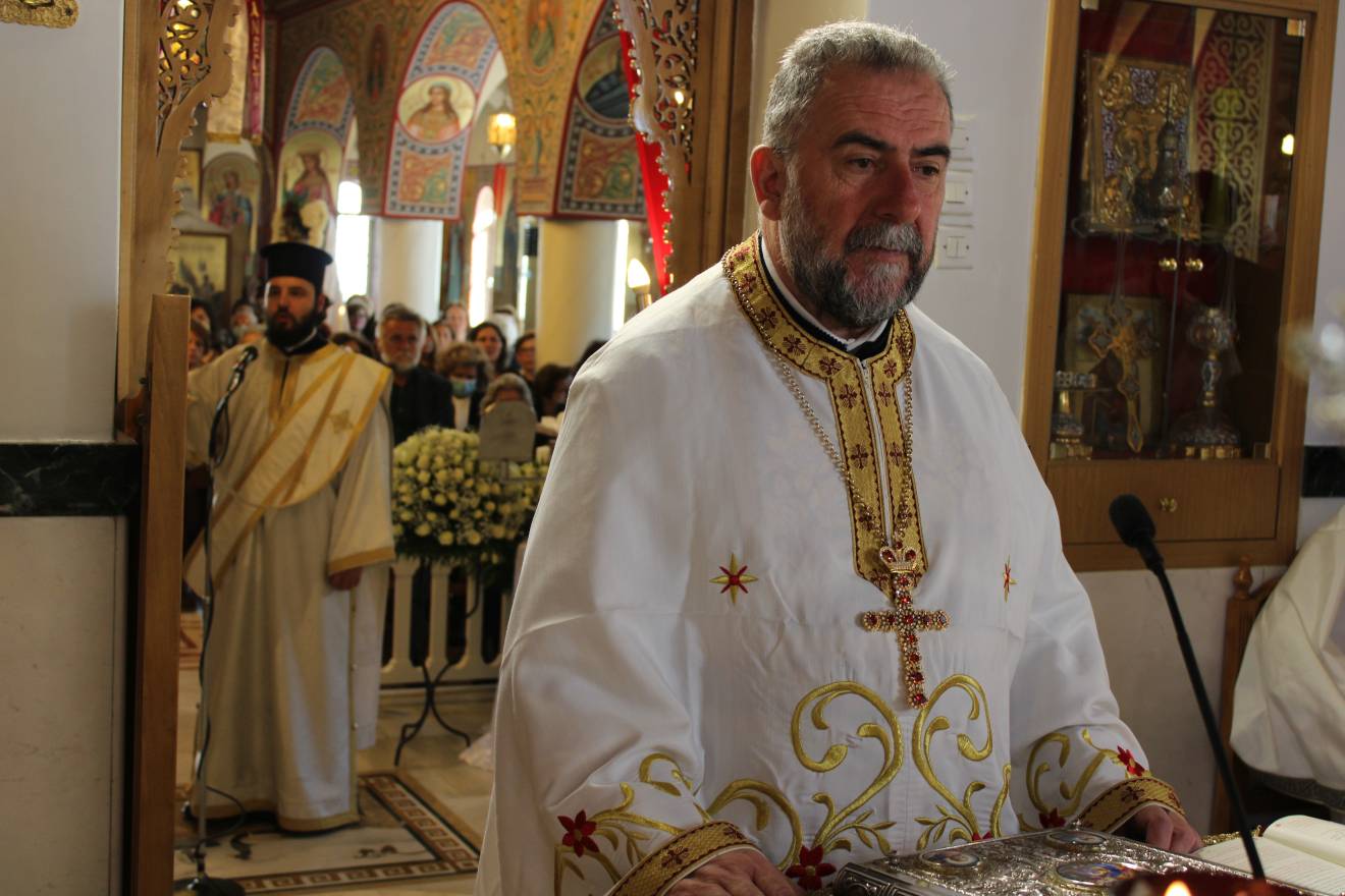 Ήταν συμπαραστατούμενος από τους Αρχιμανδρίτες Ιωάννη Ράπτη - Γενικό Αρχιερατικό Επίτροπο της Ιεράς Μητροπόλεως, Αγαθάγγελο Κόκλα - Ιεροκήρυκα της Ιεράς Μητροπόλεως, που ομίλησε κατάλληλα για την εορτή και Τίτο Χρήστου - Αρχιερατικό Επίτροπο Φυλής και Αχαρνών και τους Πρωτοπρεσβυτέρους και Πρεσβυτέρους Κωνσταντίνο Λαμπρόπουλο - Πρόεδρο του Εκκλ. Συμβουλίου του εορτάζοντος Ιερού Ναού, Άγγελο Κανέλλο - Πρόεδρο του Εκκλ. Συμβουλίου του Ι. Ν. Γεννήσεως Θεοτόκου Ζεφυρίου και Διονύσιο Λαμπρόπουλο και τους διακόνους του π. Άγγελο Μιχαλόπουλο και π. Νεκτάριο Τριβέλα.