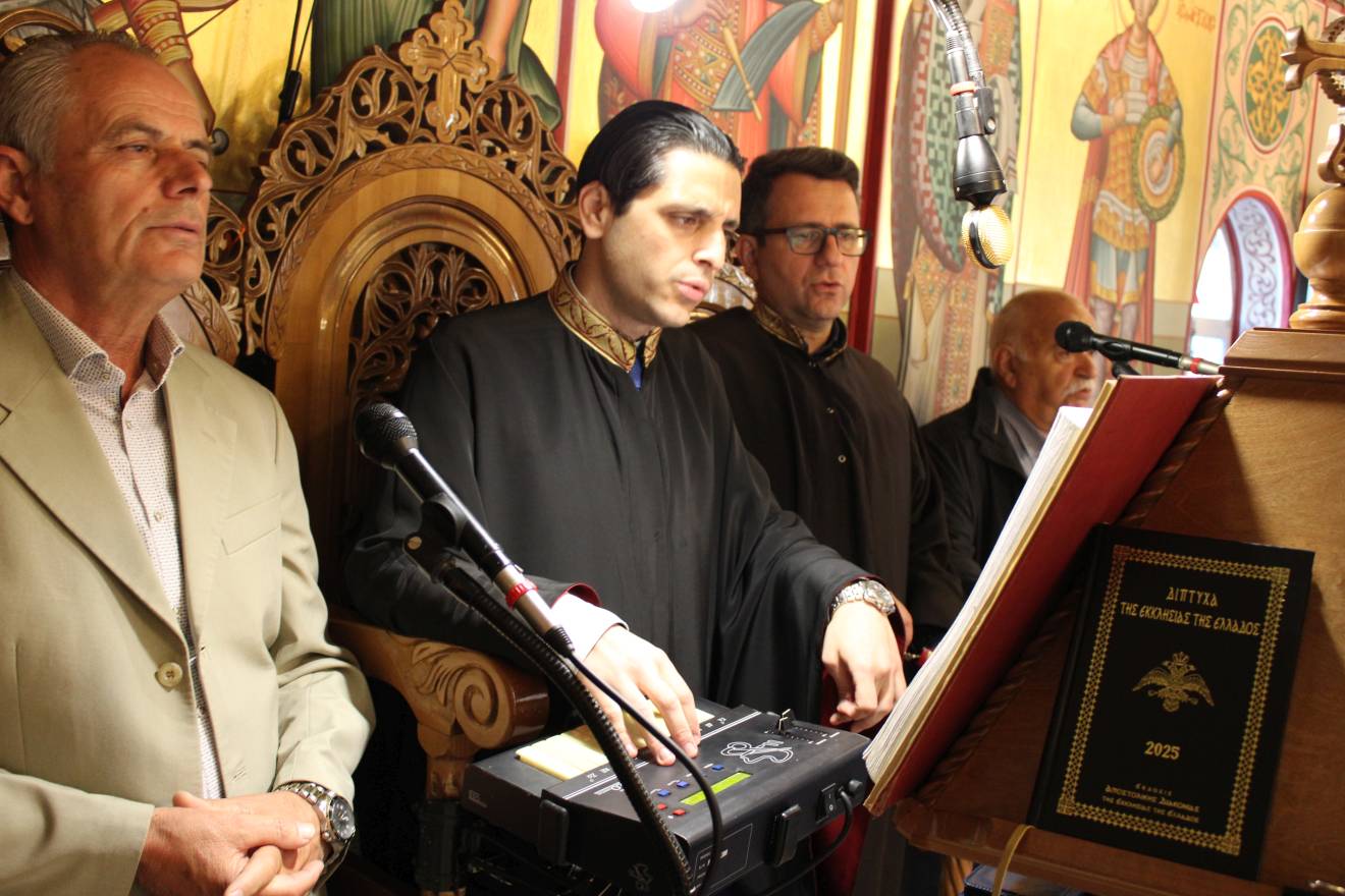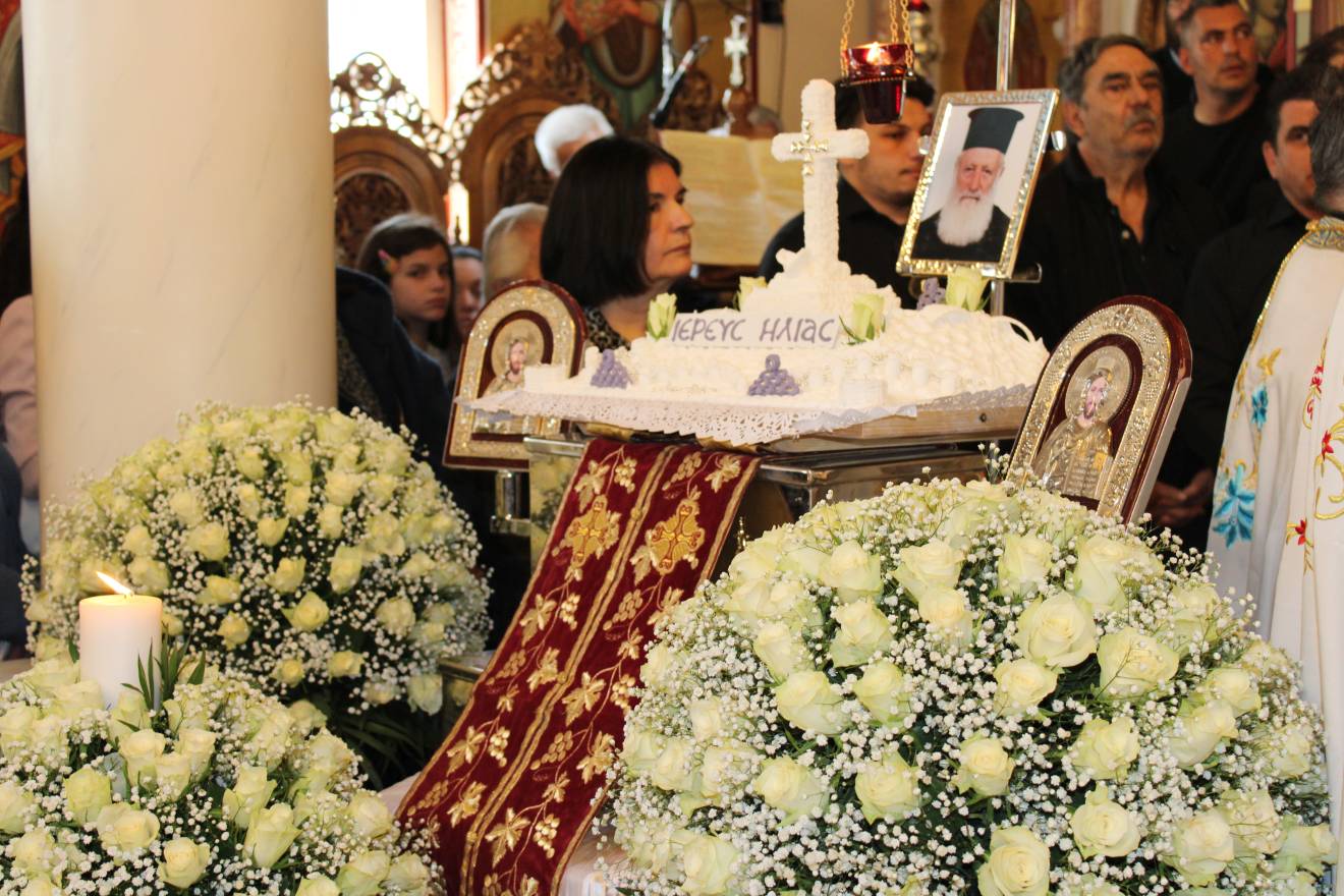 Πριν την απόλυση της λειτουργίας ο Σεβασμιώτατος μαζί με τους ιερείς τέλεσαν το τεσσαρακονθήμερο μνημόσυνο του μακαριστού π. Ηλία Λαμπρόπουλου, ο οποίος υπηρέτησε χρόνια στον Ιερό Ναό, όντας και κτήτοράς του, αλλά και πατέρας του π. Κωνσταντίνου και ποππούς του π. Διονυσίου. Ο Σεβασμιώτατος ομίλησε δι’ ολίγων για τον μακαριστό, τονίζοντας την αγάπη, την υπομονή και την εργατικότητά του, καθώς και την ευρεία απήχησή του ποιμαντικού του έργου στους ενορίτες.