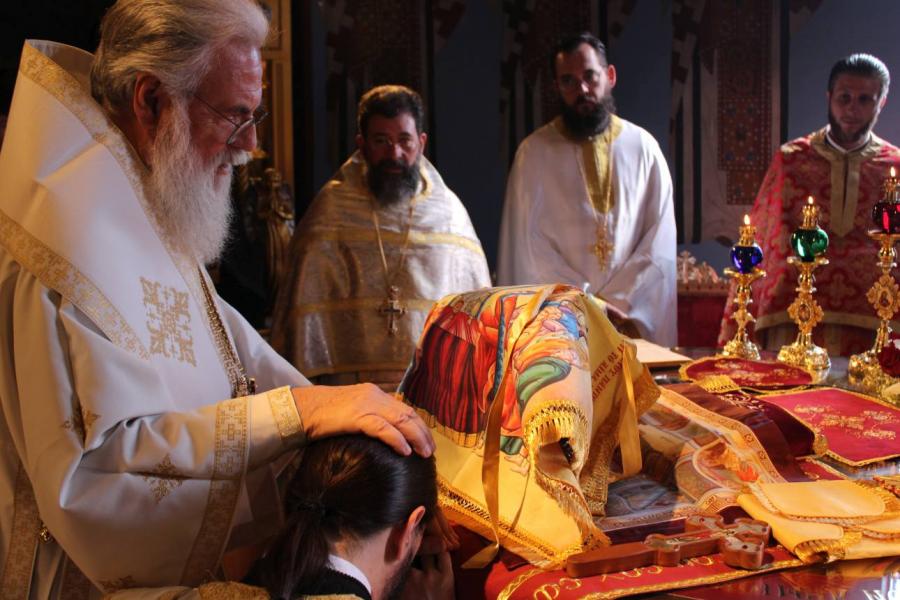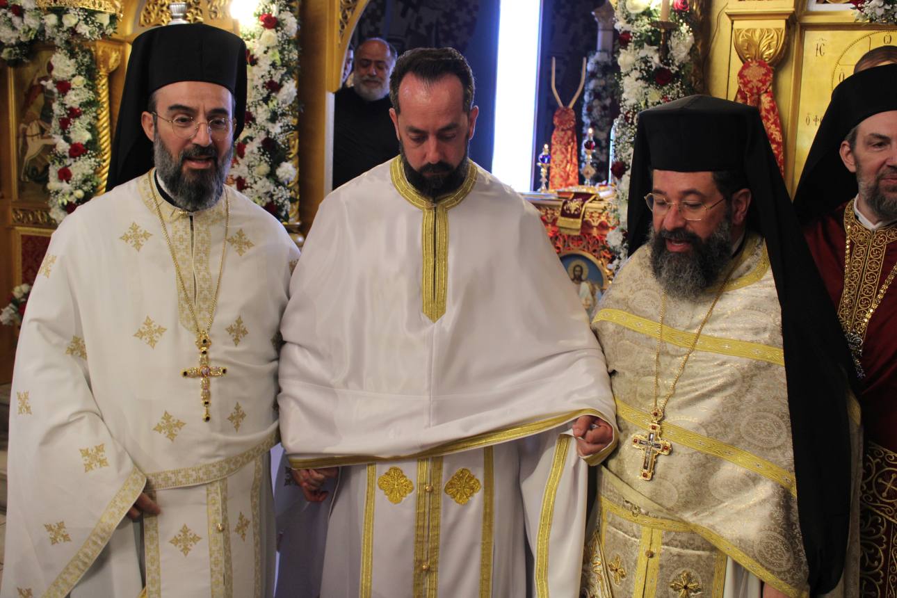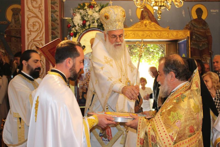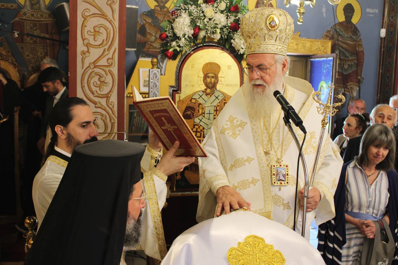 Στο τέλος της Θείας Λειτουργίας ο Σεβασμιώτατος χειροθέτησε τον π. Δαμασκηνό σε Αρχιμανδρίτη, κάνοντας μνεία της ποικίλης διακονίας του στην ενορία του.