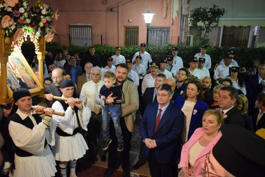 Μετά το πέρας του Εσπερινού ακολούθησε η λιτάνευση της εικόνας των Αγίων, με τη συμμετοχή του Δημάρχου Αχαρνών κ. Σπυρίδωνος Βρεττού και εκπροσώπων της τοπικής αυτοδιοίκησης πρώτου και δεύτερου βαθμού.