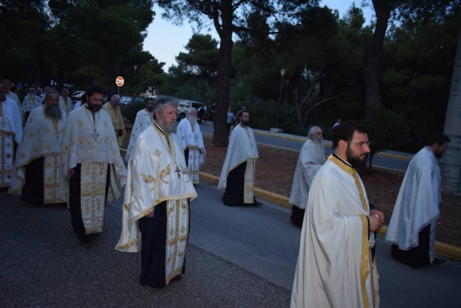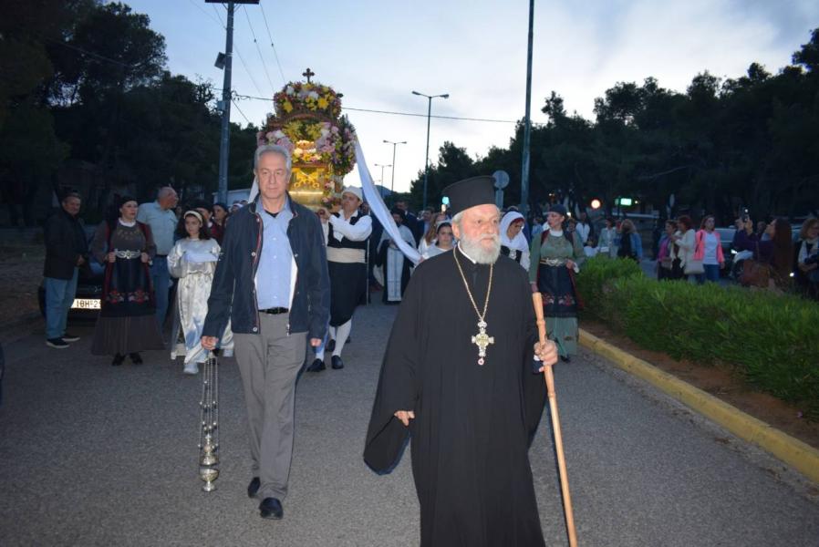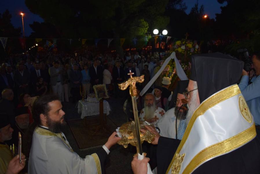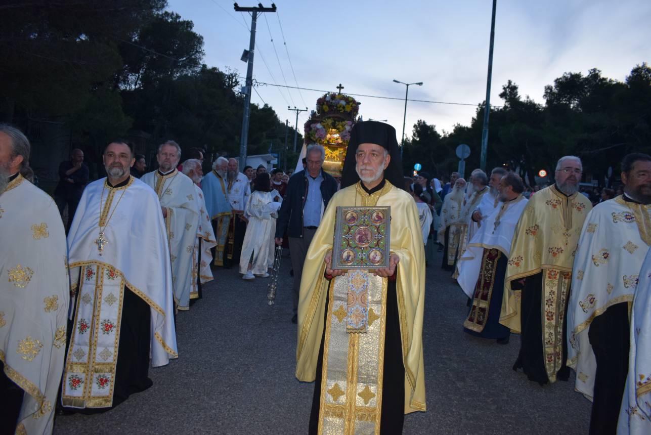 Τον πανηγυρικό Εσπερινό διαδέχτηκε η λιτάνευση της Ιεράς Εικόνος. Πριν την εκκίνησή της. ο Σεβασμιώτατος ομίλησε αναλύοντας το τροπάριο «ὁ ἐν Προφήταις λαλήσας, καὶ διὰ νόμου κηρυχθείς, πρῴην τοῖς ἀτελέσι, Θεὸς ἀληθὴς ὁ Παράκλητος, τοῖς τοῦ Λόγου ὑπηρέταις καὶ μάρτυσι, γνωρίζεται σήμερον», αναδεικνύοντας τη διαχρονικότητα της παρουσίας του Αγίου Πνεύματος στην ανθρώπινη ιστορία, το οποίο ενεργεί στους προφήτες αλλά και στην παράδοση του Νόμου και των εντολών του Θεού προς τους Ιουδαίους, έστω κι αν γνωρίζεται και εμφανίζεται φανερά στον κόσμο κατά την επιφοίτηση των μαθητών στο υπερώο της Ιερουσαλήμ.