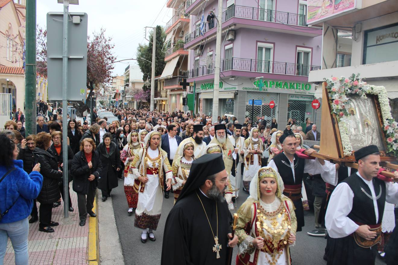 Το απόγευμα κατά τις 17:30 έγινε η λιτανεία της Εικόνος του Ευαγγελισμού της Θεοτόκου, την οποία παρακολούθησε πλήθος κόσμου, προπορευομένης της φιλαρμονικής του Δήμου.