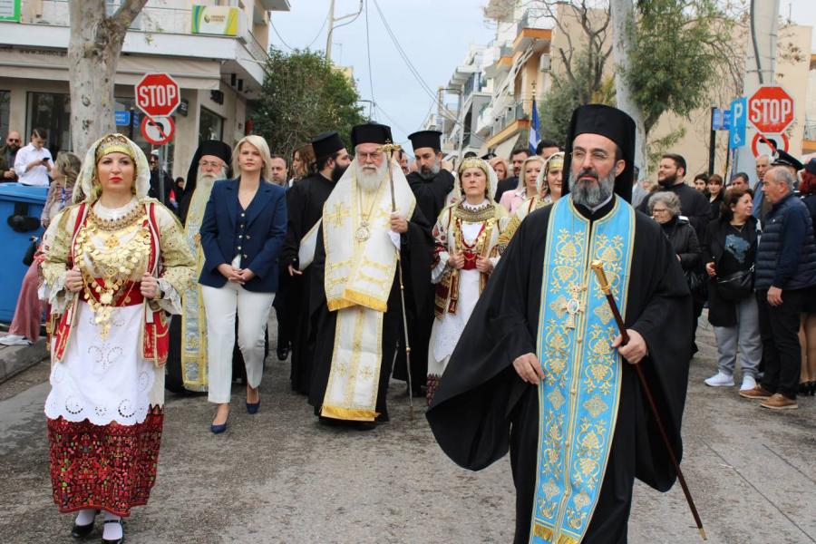 Μετά το τέλος της Θείας Λειτουργίας τελέσθηκε η ακολουθία της Δοξολογίας για την Εθνική Επέτειο της 25ης Μαρτίου του 1821, στην οποία παρεβρέθησαν ηΔήμαρχος Ιλίου κα Αντριάνα Αλεβίζου-Κουκουβίνου, ο Πρόεδρος και τα μέλη του Δημοτικού Συμβουλίου, η αντιπεριφερειάρχης Ελένη Αυλωνίτη και ο διοικητής του Αστυνομικού Τμήματος Ιλίου.