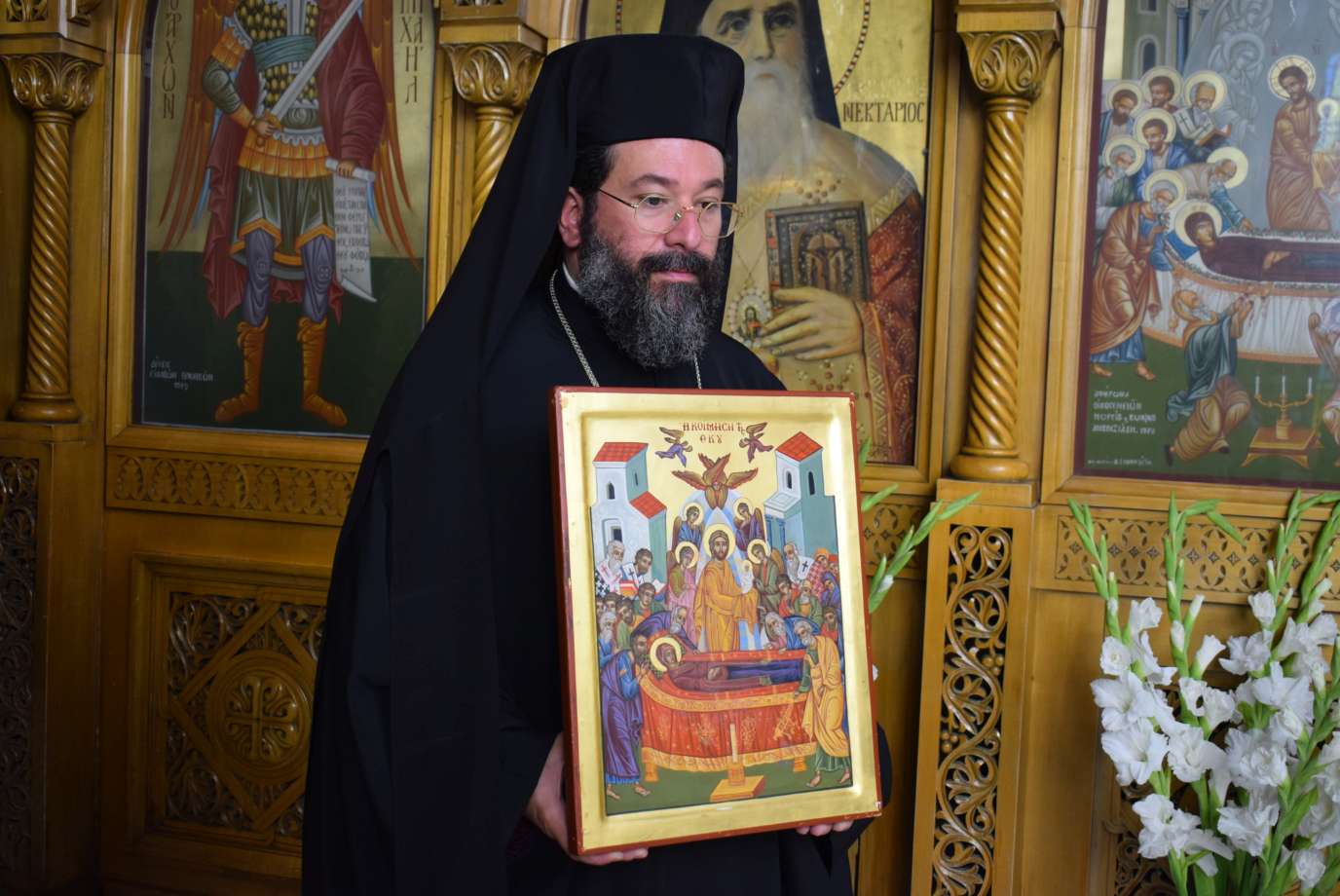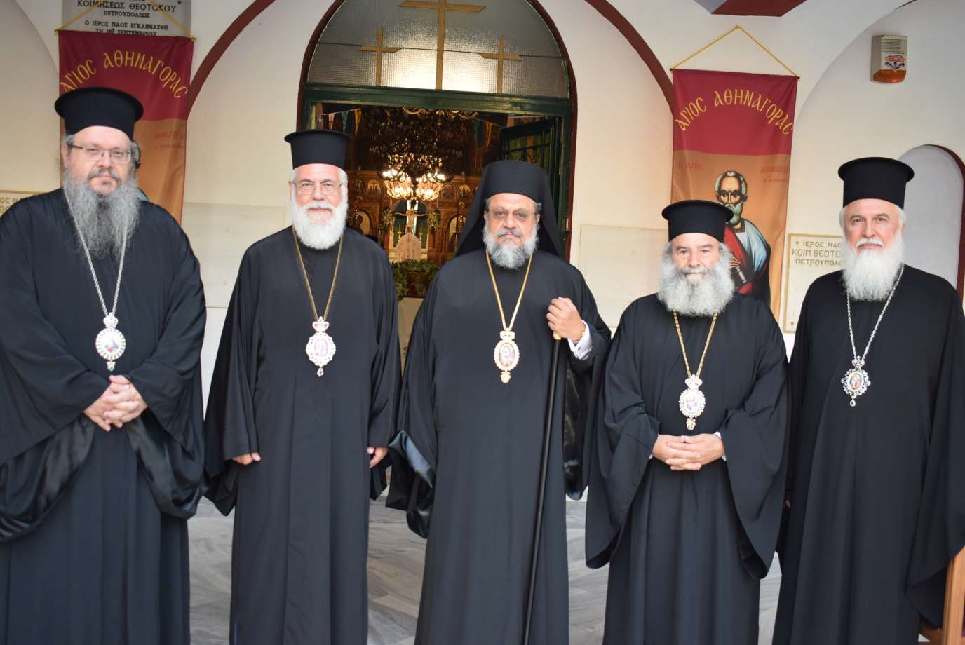 Πλήθος πιστών κατέκλυσαν τον Ιερό Ναό Κοιμήσεως Θεοτόκου Πετρουπόλεως για να συμπροσευχηθούν και να ευχηθούν στον Ποιμενάρχη τους το «έτη πολλά». Στον Όρθρο χοροστάτησε ο Σεβασμιώτατος Μητροπολίτης Μεσσηνίας κ. Χρυσόστομος ενώ της Θείας Λειτουργίας προεξήρχε ο εορτάζων Μητροπολίτης κ. Αθηναγόρας και συλλειτουργούντες ήταν οι Σεβασμιώτατοι Μητροπολίτες Μεσσηνίας κ. Χρυσόστομος, Κηφισίας κ. Κύριλλος, Μάνης κ. Χρυσόστομος, Λαρίσης κ. Ιερώνυμος και Λήμνου κ. Ιερόθεος, ενώ συμπροσευχόμενοι στο Ιερό Βήμα ήταν οι Μητροπολίτες Θηβών κ. Γεώργιος, Βρεσθένης κ. Θεόκλητος και Πτολεμαΐδος κ. Εμμανουήλ.