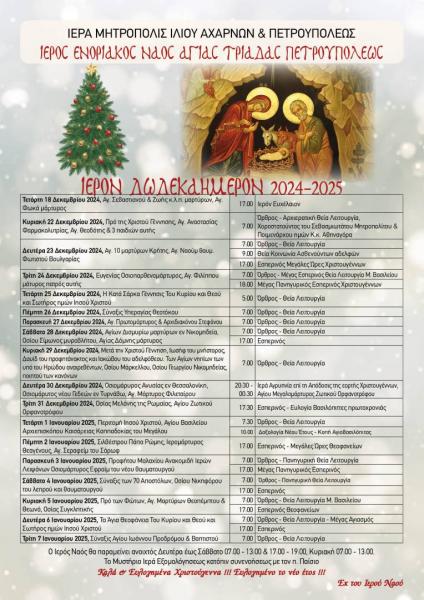 Πρόγραμμα ακολουθιών Δωδεκαημέρου στην Αγία Τριάδα Πετρ.
