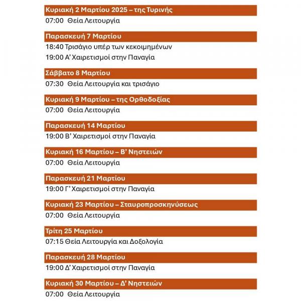 Πρόγραμμα ακολουθιών Μαρτίου 2025 ενορίας Αγίου Διονυσίου Αχαρνών