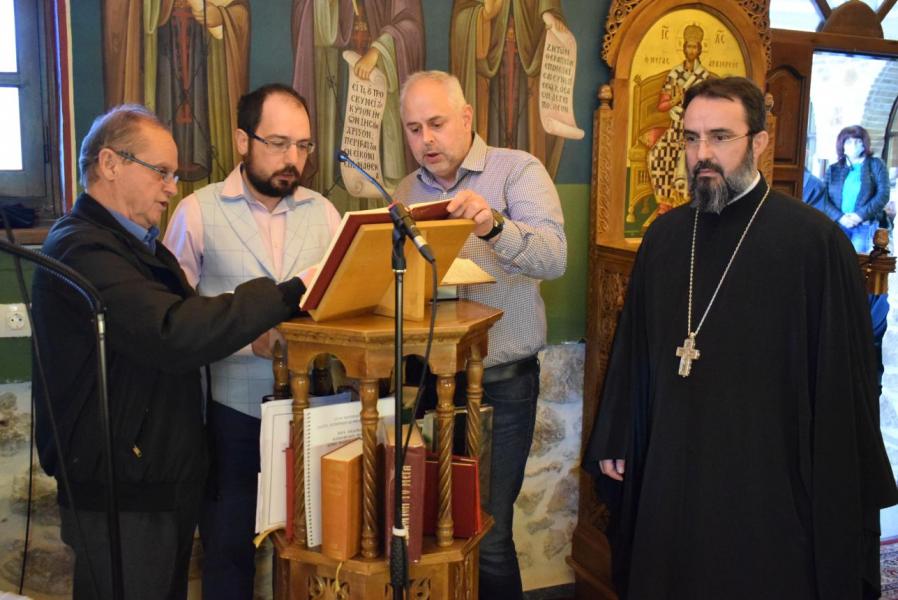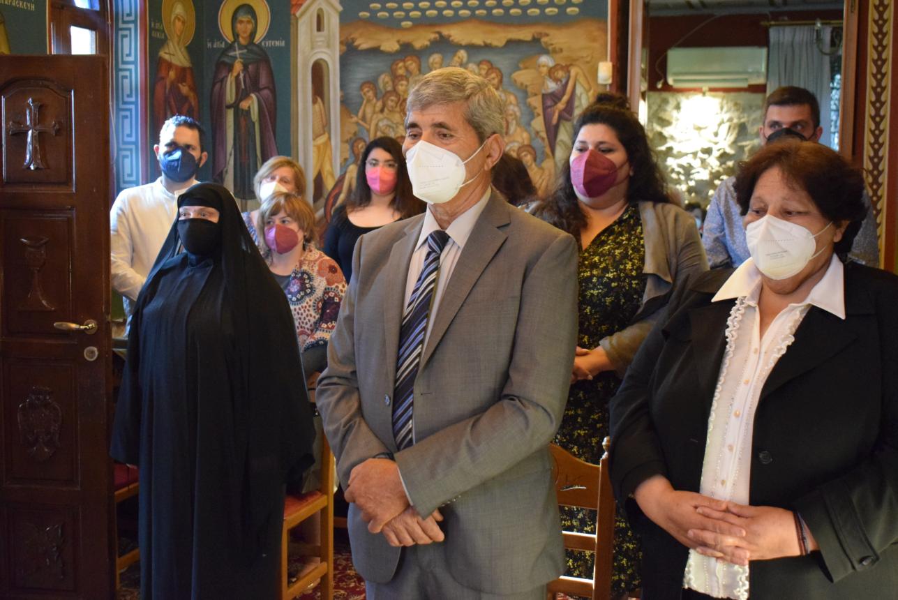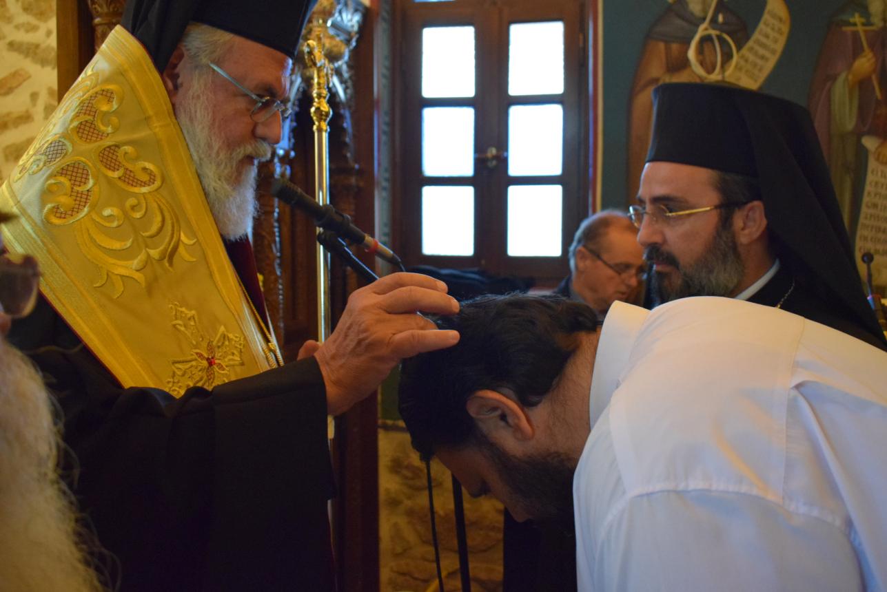 Πλήθος κόσμου από την ενορία της Κοιμήσεως Θεοτόκου και από τις γύρω περιοχές ευχήθηκαν στον νέο μοναχό.