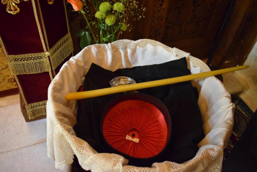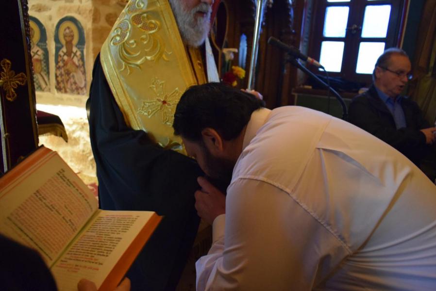 Μετά το πέρας του Κατανυκτικού Εσπερινού, προσήχθη ο δόκιμος Ρουσικός, ιατρός, από τον ηγούμενο της Μονής και Πρωτοσύγκελλο της Ιεράς Μητροπόλεως Αρχιμ. Νικόδημο Αθανασίου και τον Ιεροκήρυκα Αρχιμ. Ιωαννίκιο Γιαννόπουλο, ενώπιον του Σεβασμιωτάτου Μητροπολίτου Ιλίου, Αχαρνών και Πετρουπόλεως κ. Αθηναγόρου, ο οποίος του απηύθυνε πατρικό λόγο ερμηνεύοντας το προκείμενο της ημέρας «έδωκας κληρονομίαν τοις φοβουμένοις σε Κύριε». Η κληρονομιά δίνεται από τον Θεό σε όλους του ανθρώπους, είτε της έγγαμης, είτε της μοναχικής ζωής. Οι άνθρωποι καλούμαστε αυτή τη δωρεά να την πολλαπλασιάσουμε, είτε στον κόσμο, είτε στο μοναστήρι. Ο Ρουσικός διακόνησε την Ιερά Μονή για περισσότερα από δώδεκα χρόνια πριν γίνει η κουρά του κι έτσι ο Σεβασμιώτατος του έδωσε το όνομα του εφόρου της Μονής, Αγίου Παντελεήμονα.