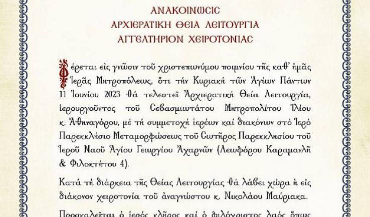 Αγγελτήριο χειροτονίας