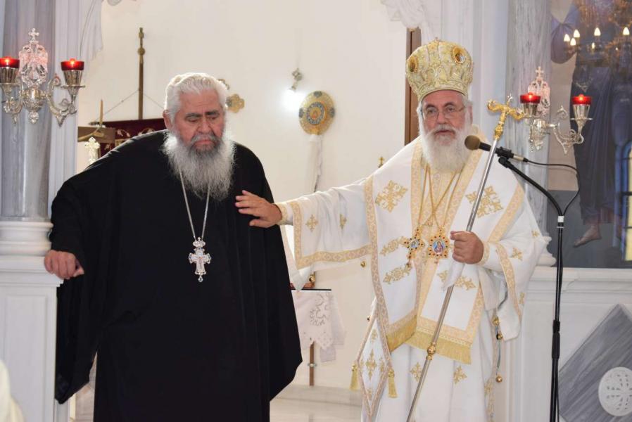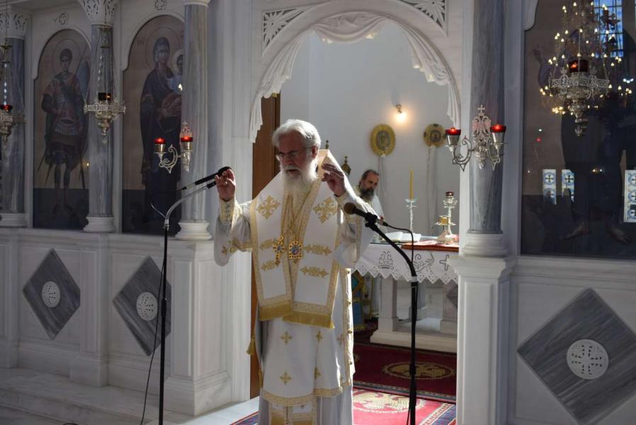 Στο τέλος της Θείας Λειτουργίας, μέσα σε άκρως συγκινητική ατμόσφαιρα, ο Σεβασμιώτατος απηύθυνε στον ακάματο ιερέα καρδιακούς λόγους και αναφέρθηκε στην συμπόρευσή τους κατά τα τελευταία δώδεκα χρόνια. Επιπλέον, μνημόνευσε τους βασικότερους σταθμούς της διακονίας του π. Γεωργίου - από την χειροτονία του από τον μακαριστό Μητροπολίτη Αττική κυρό Δωρόθεο μέχρι σήμερα.