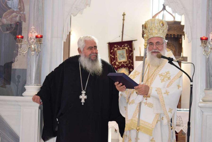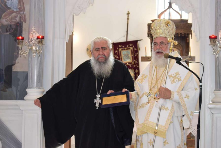 Ο Σεβασμιώτατος παρέδωσε στον συνταξιοδοτούμενο ιερέα τιμητική πλακέτα. Παρίσταντο ο Αντιπρόεδρος της Βουλής και Βουλευτής κ. Αθανάσιος Μπούρας, ο Δήμαρχος Φυλής κ. Χρήστος Παππούς, οι Δημοτικοί Σύμβουλοι κ.κ. Καμπόλης και Λιάκος, καθώς και ο Γενικός Γραμματέας του Δήμου κ. Αργύρης Αργυρόπουλος.