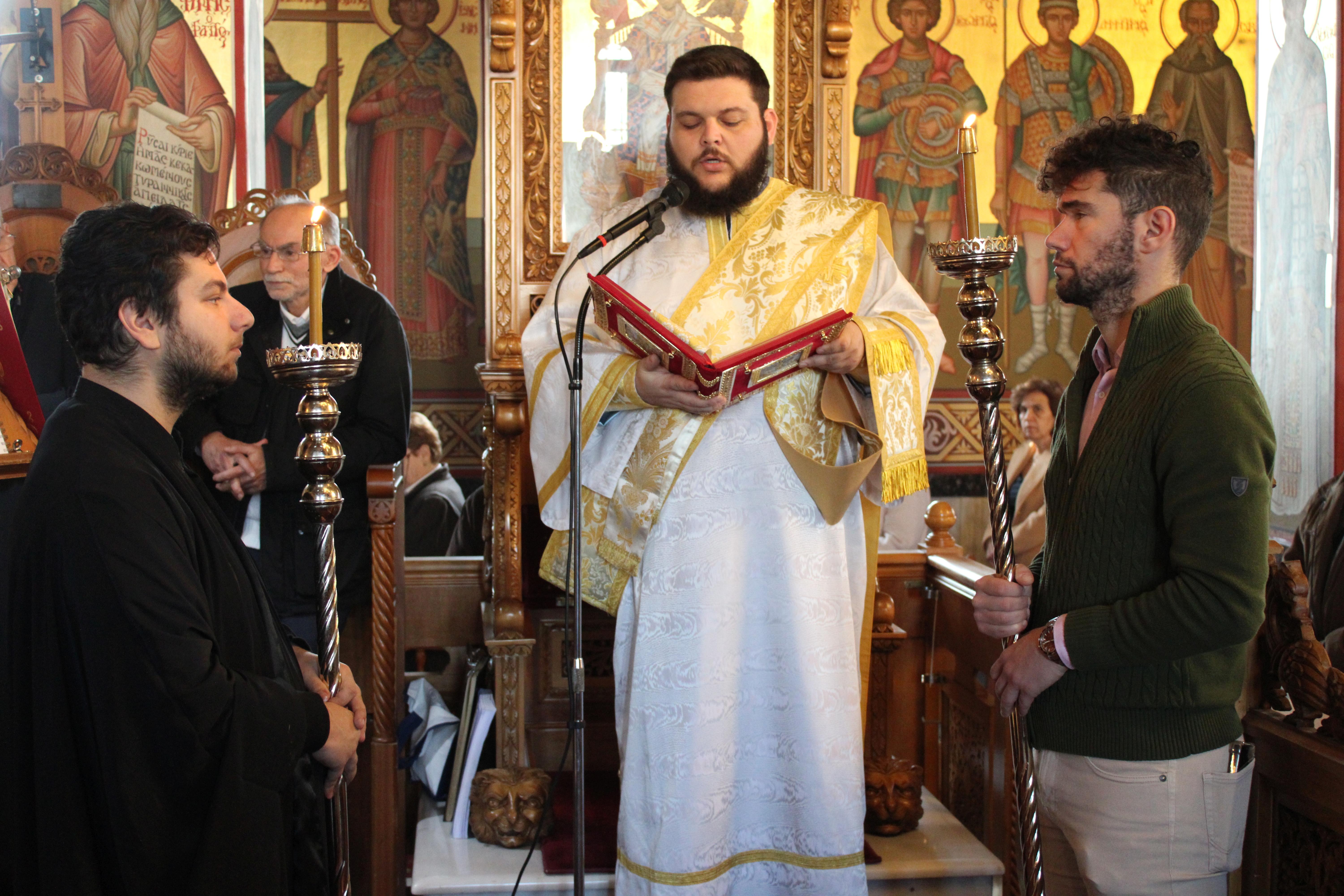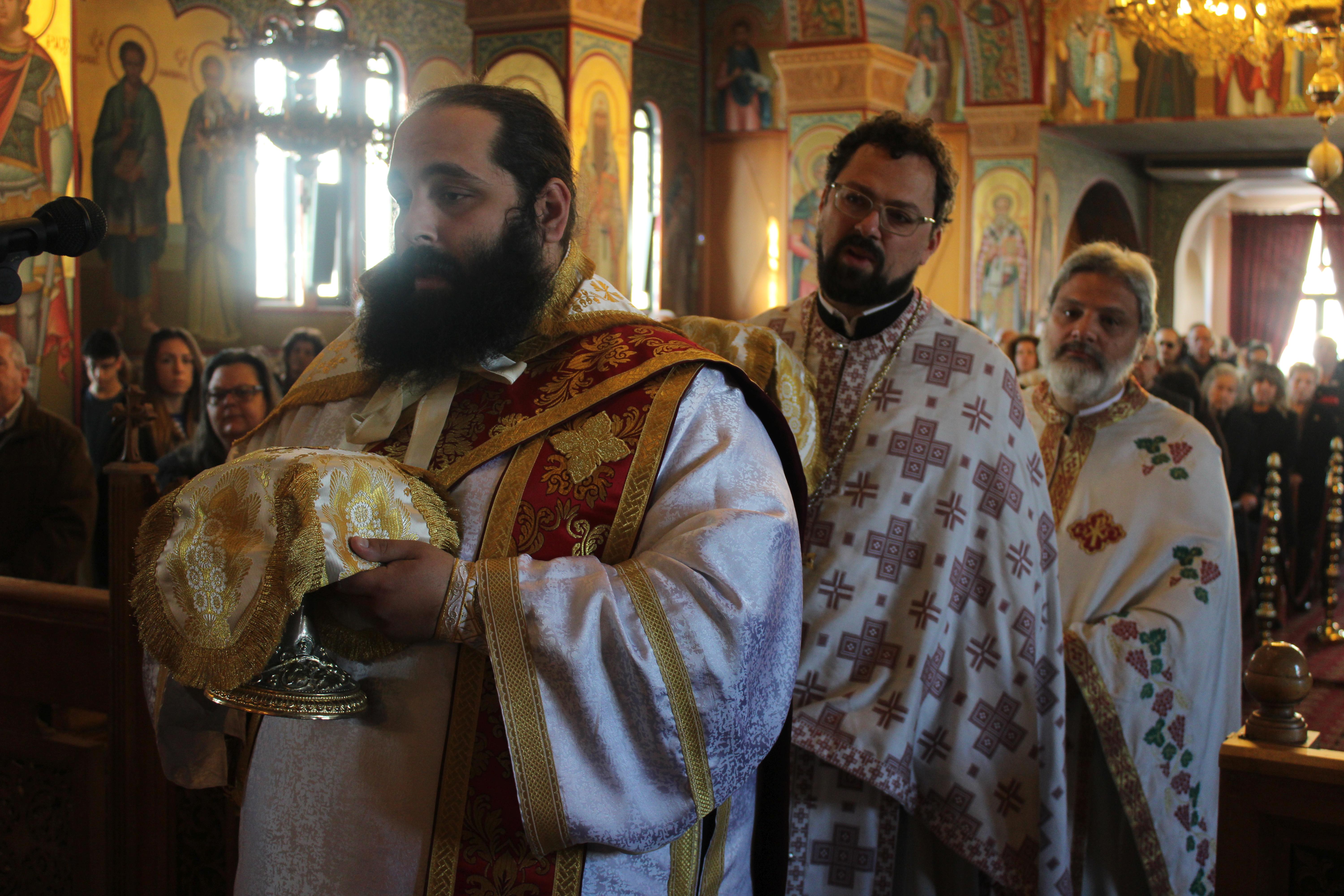 Πριν την απόλυση της λειτουργίας τελέσθηκε το μνημόσυνο του π. Γεωργίου, ο οποίος υπηρέτησε επί πολλά έτη ως εφημέριος του ιερού ναού και της πρεσβυτέρας του Ευθαλίας, η οποία κοιμήθηκε πρόσφατα.