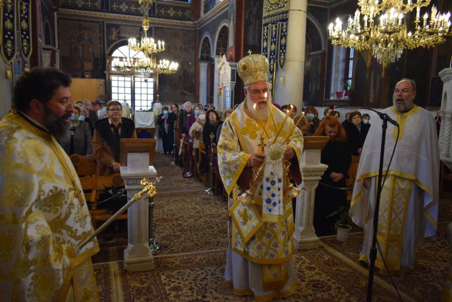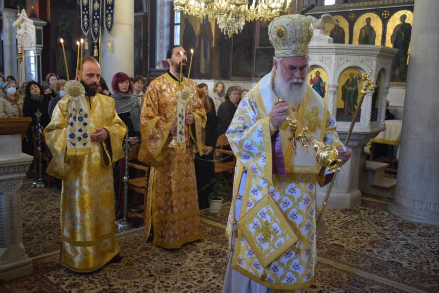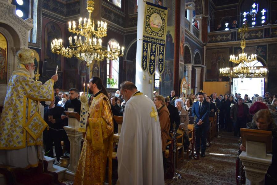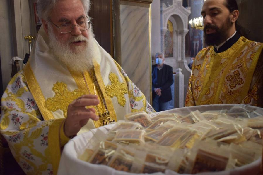 Στο κήρυγμά του ο Σεβασμιώτατος αναρωτήθηκε πώς η φράση του Αγίου Ιωάννου του Χρυσοστόμου από τον Κατηχητικό του Λόγο στην Ανάσταση του Χριστού «που σου θάνατε το κέντρον; (κεντρί)» μπορεί να γίνει βάλσαμο παρηγοριάς και ελπίδας για το οδυνηρό γεγονός των ημέρων, που χάραξε την πρώτη εβδομάδα των Νηστειών, της πορείας όλων μας προς την Ανάσταση του Χριστού. Η εορτή της Ορθοδοξίας, της αναστήλωσης των εικόνων, έρχεται να δώσει τη λύτρωση, καθώς μας βεβαιώνει για την αποκατάσταση της ανθρώπινης φύσης, η οποία αποδομείται μεν από τον θάνατο, αλλά αποκαθίσταται με την αναδημιουργία της στη Βασιλεία του Θεού.