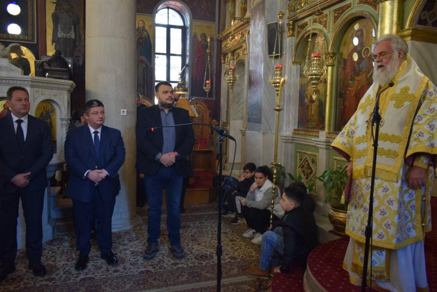 Πριν την απόλυση τελέστηκε τρισάγιο για την ανάπαυση των ψυχών των κατά το σιδηροδρομικό δυστύχημα των Τεμπών τελειωθέντων.