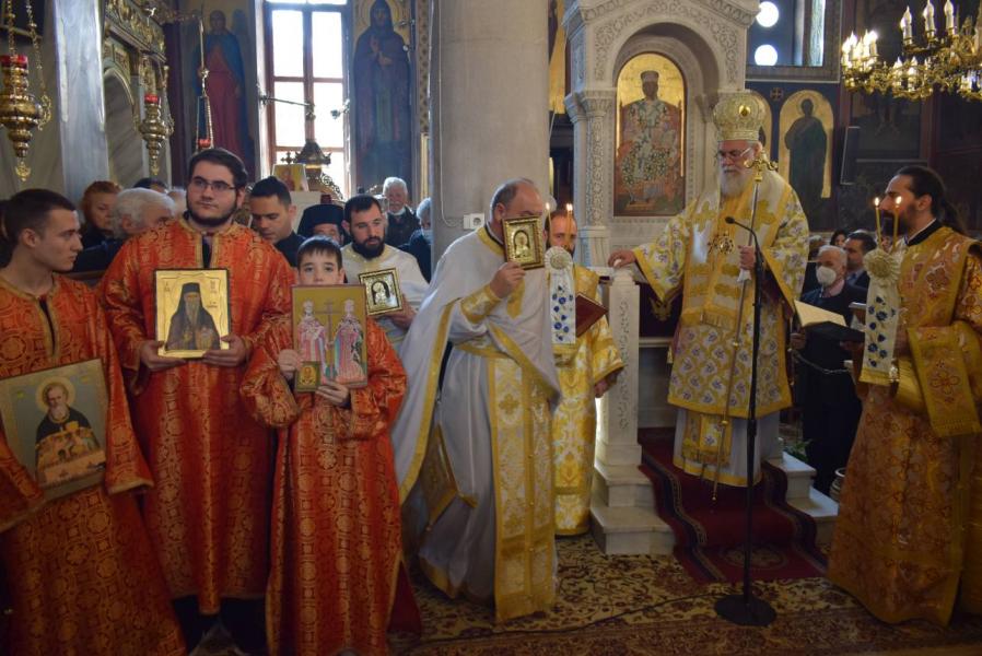 Μετά το πέρας της Θείας Λειτουργίας πραγματοποιήθηκε λιτάνευση των Ιερών Εικόνων και εκφώνηση του Συνοδικού της Ορθοδοξίας.