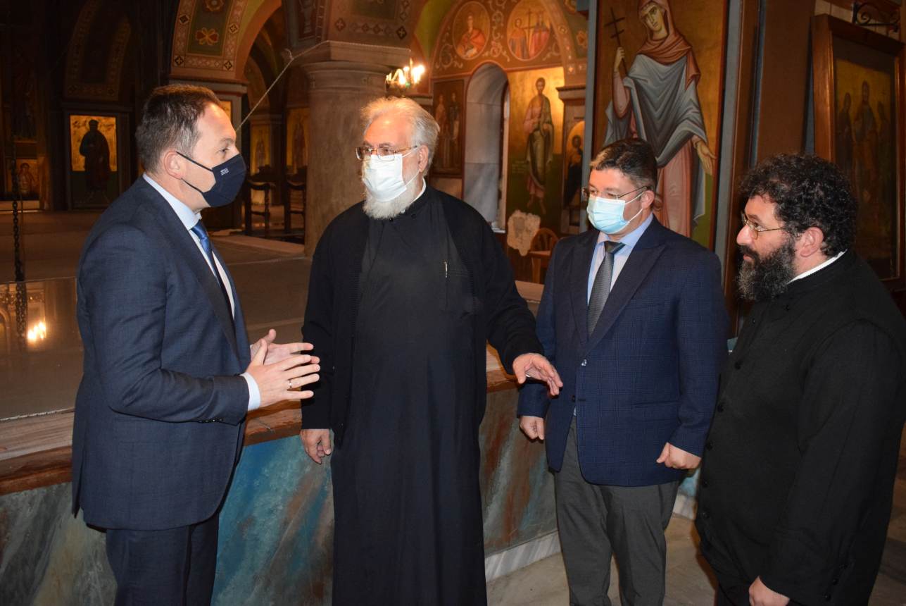 Ο Σεβασμιώτατος και ο Δήμαρχος Αχαρνών από την πλευρά τους, ευχαρίστησαν τον Αν. Υπουργό Εσωτερικών για την προθυμία και τη δέσμευση του για το συγκεκριμένο έργο.
