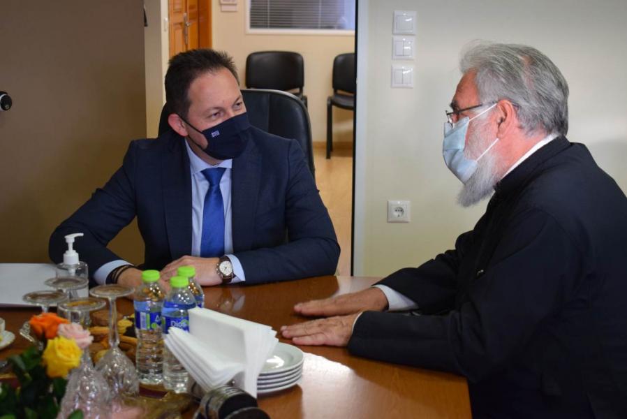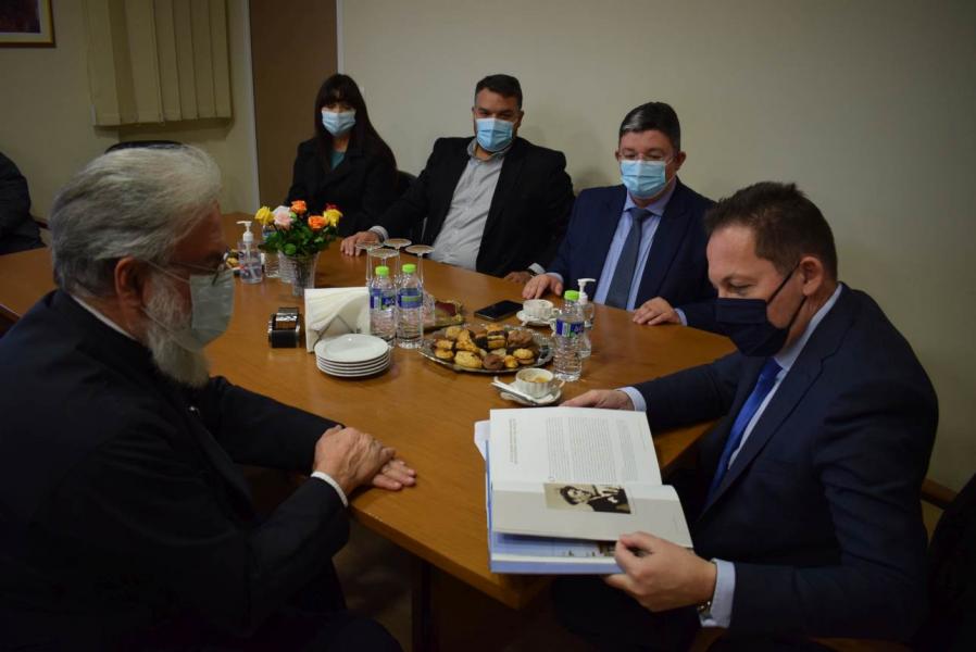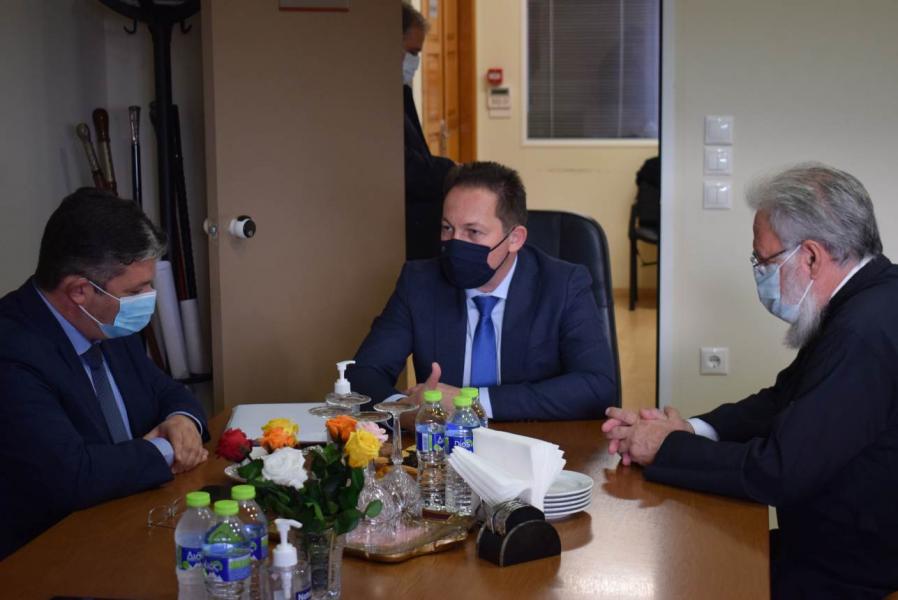 Ο Σεβασμιώτατος Μητροπολίτης Ιλίου, Αχαρνών και Πετρουπόλεως κ. Αθηναγόρας δέχθηκε την Παρασκευή 19/11/2021 τις μεταμεσημβρινές ώρες στο γραφείο του τον Αναπληρωτή Υπουργό Εσωτερικών κ. Στέλιο Πέτσα και τον Δήμαρχο Αχαρνών κ. Σπυρίδωνα Βρεττό.