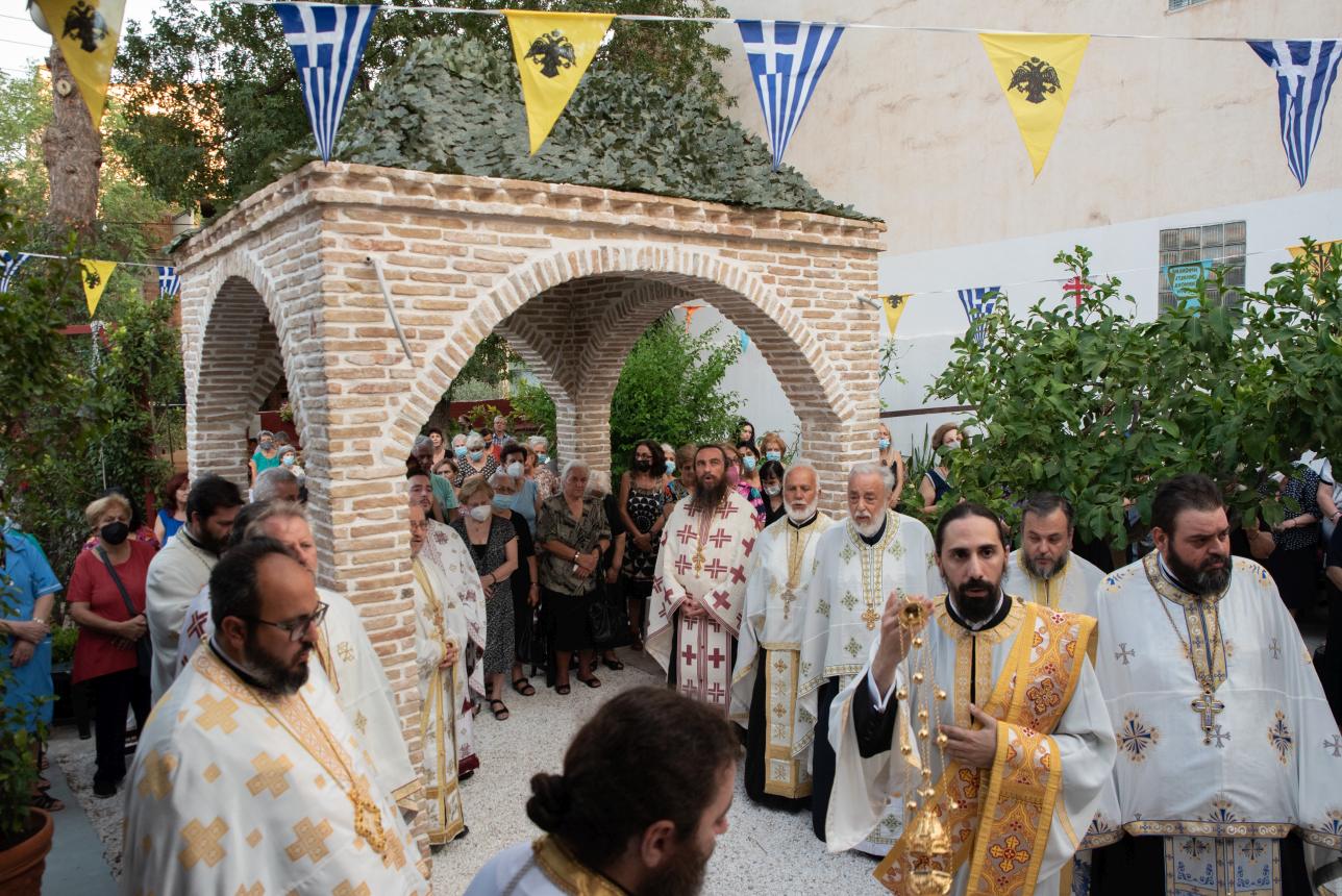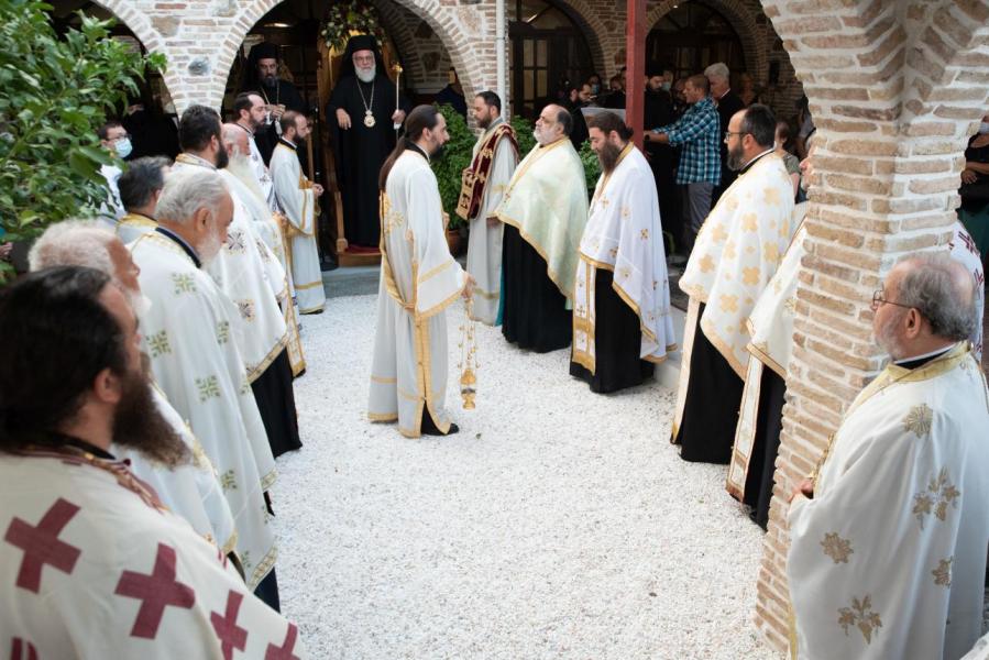 Στον πανηγυρικό Εσπερινό χοροστάτησε ο Σεβασμιώτατος Μητροπολίτης Ιλίου, Αχαρνών και Πετρουπόλεως κ. Αθηναγόρας, ενώ στο σύνθρονο παρίστατο ο Καθηγούμενος της Ιεράς Μονής και Πρωτοσύγκελος της Ιεράς Μητροπόλεως Αρχιμ. Νικόδημος Αθανασίου.