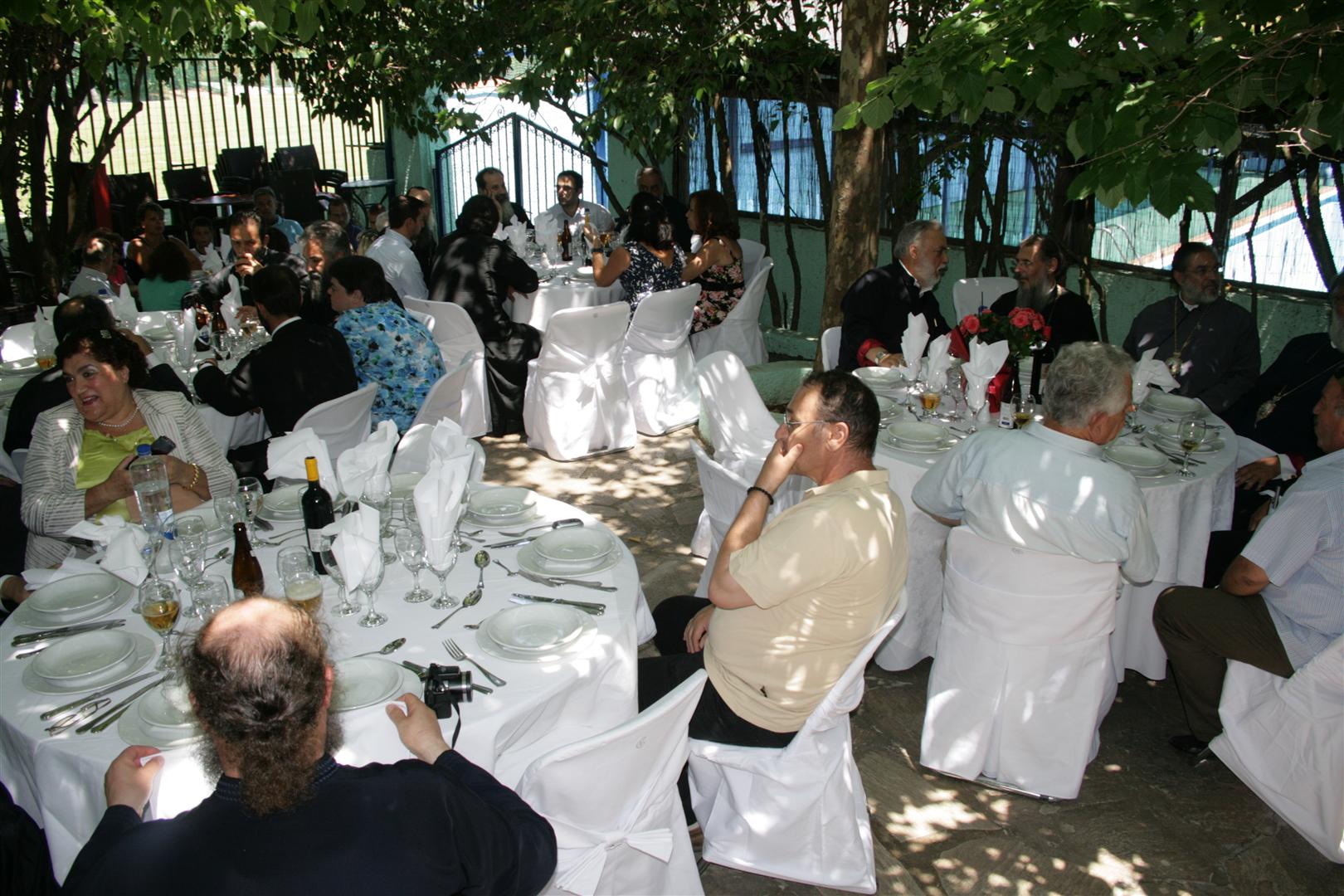 Μέσα σε ατμόσφαιρα χαράς ο Σεβασμιώτατος γευμάτισε με τους καλεσμένους του με φόντο τον καταπράσινο περιβάλλοντα χώρο της κατασκήνωσης και αφουγκραζόμενος τις ζωηρές φωνές των κατασκηνωτών, οι οποίοι ακολουθώντας το ημερήσιο πρόγραμμά τους έκαναν συχνά αισθητή την παρουσία τους. Από την όμορφη αυτή ατμόσφαιρα δεν θα μπορούσε να λείπει και μια καλλιτεχνική νότα ή οποία δόθηκε από ομάδα κατασκηνωτών, οι οποίοι χάρισαν στους παρευρισκόμενους ένα σύντομο ζωντανό μουσικό πρόγραμμα.