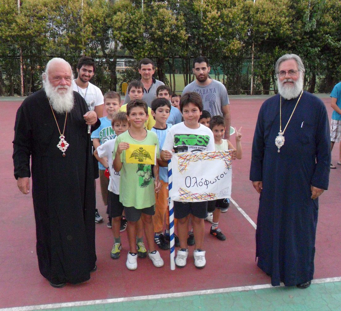 Ωστόσο το μεγαλύτερο δώρο για τη γιορτή του Σεβασμιωτάτου ήρθε το απόγευμα της ίδιας μέρας όταν στο χώρο της κατασκήνωσης κατέφθασε ο Μακαριώτατος Αρχιεπίσκοπος Αθηνών και πάσης Ελλάδος κ. κ. Ιερώνυμος για να του δώσει τις ευχές του αλλά και για να ευλογήσει τους κατασκηνωτές και τα στελέχη των δύο περιόδων. Μετά από μια σύντομη βόλτα στους χώρους της κατασκήνωσης ο Μακαριώτατος παρευρέθηκε στην υποστολή της Ελληνικής σημαίας όπου και γνωρίστηκε με τους κατασκηνωτές της Α’ περιόδου. Παρ’ όλα αυτά η επίσκεψή του δεν τελείωσε εκεί καθώς παρακάθισε και στο δείπνο που ακολούθησε. Αξιοσημείωτη ήταν η υποδοχή που του επιφύλασσαν οι κατασκηνωτές οι οποίοι με το ρυθμικό χειροκρότημά τους εκδήλωσαν τη χαρά και την ευχαρίστησή τους για την παρουσία του ανάμεσά τους.  Μετά το πέρας του δείπνου ο Μακαριώτατος παρακολούθησε την καθιερωμένη ψυχαγωγία των κατασκηνωτών με ζωντανή ορχήστρα και χορευτική ομάδα. Ολοκληρώνοντας την επίσκεψή του έδωσε στον Μητροπολίτη Ιλίου τις θερμότερες ευχές του για υγεία και μακροημέρευση ενώ ανανέωσε με στελέχη και κατασκηνωτές το ραντεβού για την επόμενη κατασκηνωτική χρονιά.