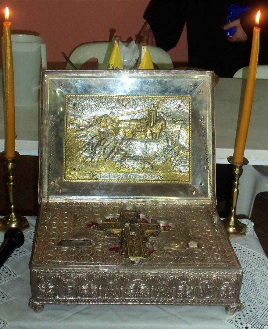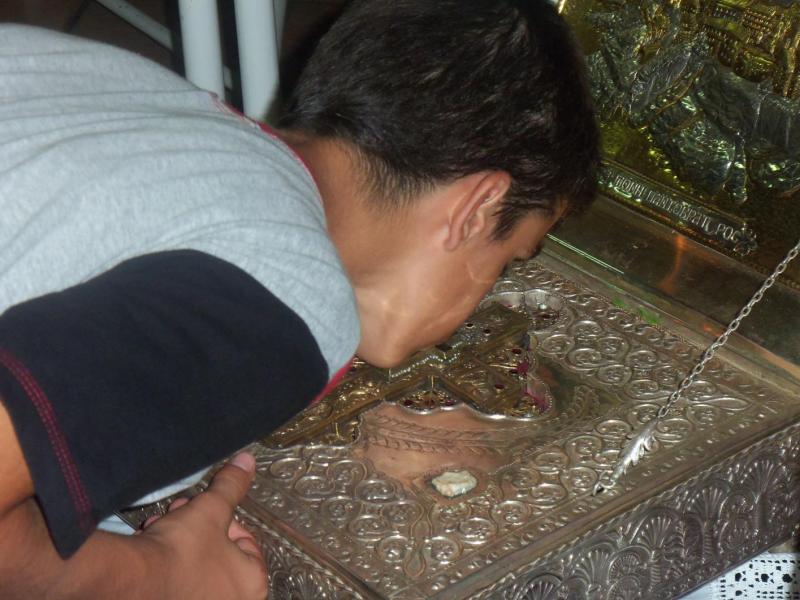 Τη μεγίστη αυτή ευλογία έφεραν στην κατασκήνωση δύο εκ των μελών της αδελφότητας της Ιεράς Μονής Παντοκράτορος του Αγίου Όρους, ο ιερομόναχος πατήρ Αλέξιος με τη συνοδεία του μοναχού Νικήτα. Στη λαμπρή αυτή υποδοχή, οι κατασκηνωτές, τα στελέχη, αλλά και το προσωπικό που διακονεί την κατασκήνωση έπειτα από σύντομη δέηση προσκύνησαν με ευλάβεια τα ιερά αυτά τεμάχια, τα οποία εναποτέθηκαν στο χώρο της τραπεζαρίας της κατασκήνωσης.