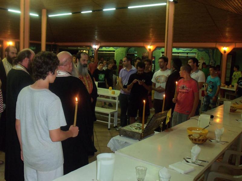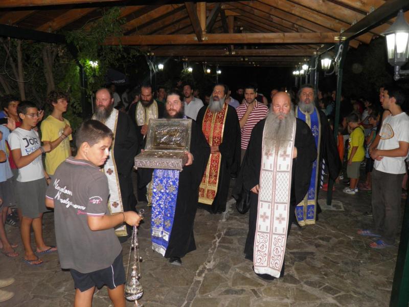 Αξιοσημείωτη ήταν η ένταση με την οποία πολλοί κατασκηνωτές αισθάνθηκαν και βίωσαν την κατανυκτικότητα αυτών των στιγμών. Μετά το πέρας του δείπνου στο οποίο παρακάθισαν οι Αγιορείτες πατέρες, ακολούθησε πομπἠ με τη συμμετοχή στελεχών και ιερέων οι οποίοι περιέφεραν τα ιερά τεμάχια με τη συνοδεία βυζαντινών ύμνων σε όλους τους χώρους της κατασκήνωσης καθαγιαζόντάς την.