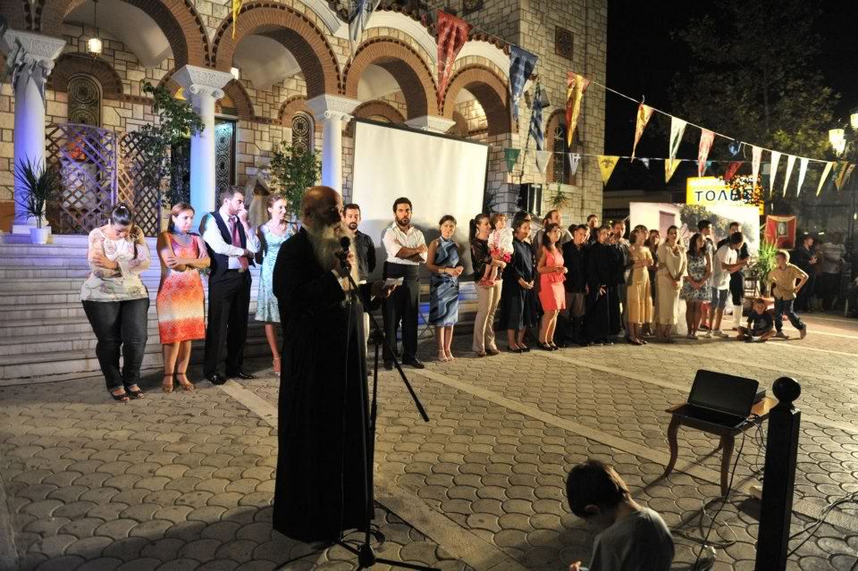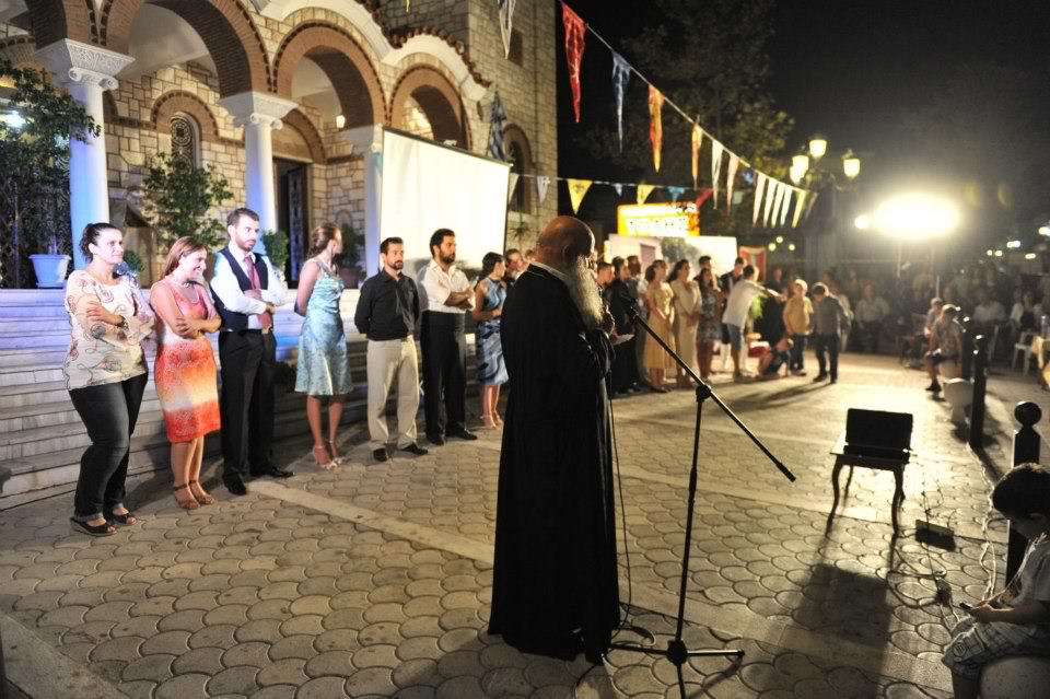 Η εκδήλωση έγινε στο προαύλιο του Ιερού Ναού, αμέσως μετά το πέρας του Πανηγυρικού Εσπερινού, όπου χοροστάτησε ο Μητροπολίτης Ιλίου κ. Αθηναγόρας. Τα παιδιά έγραψαν, σκηνοθέτησαν και έπαιξαν ένα πρωτότυπο έργο που σατήρισε τα παλαιότερα κατεστημένα της πόλης.