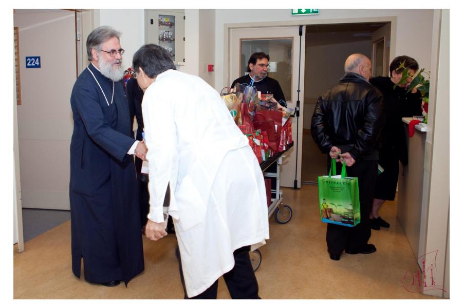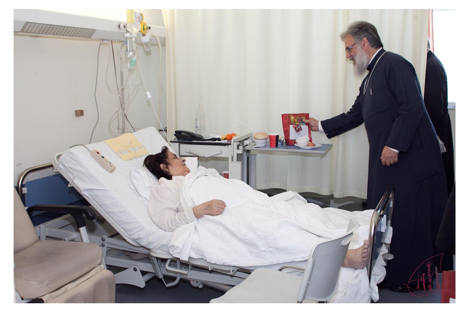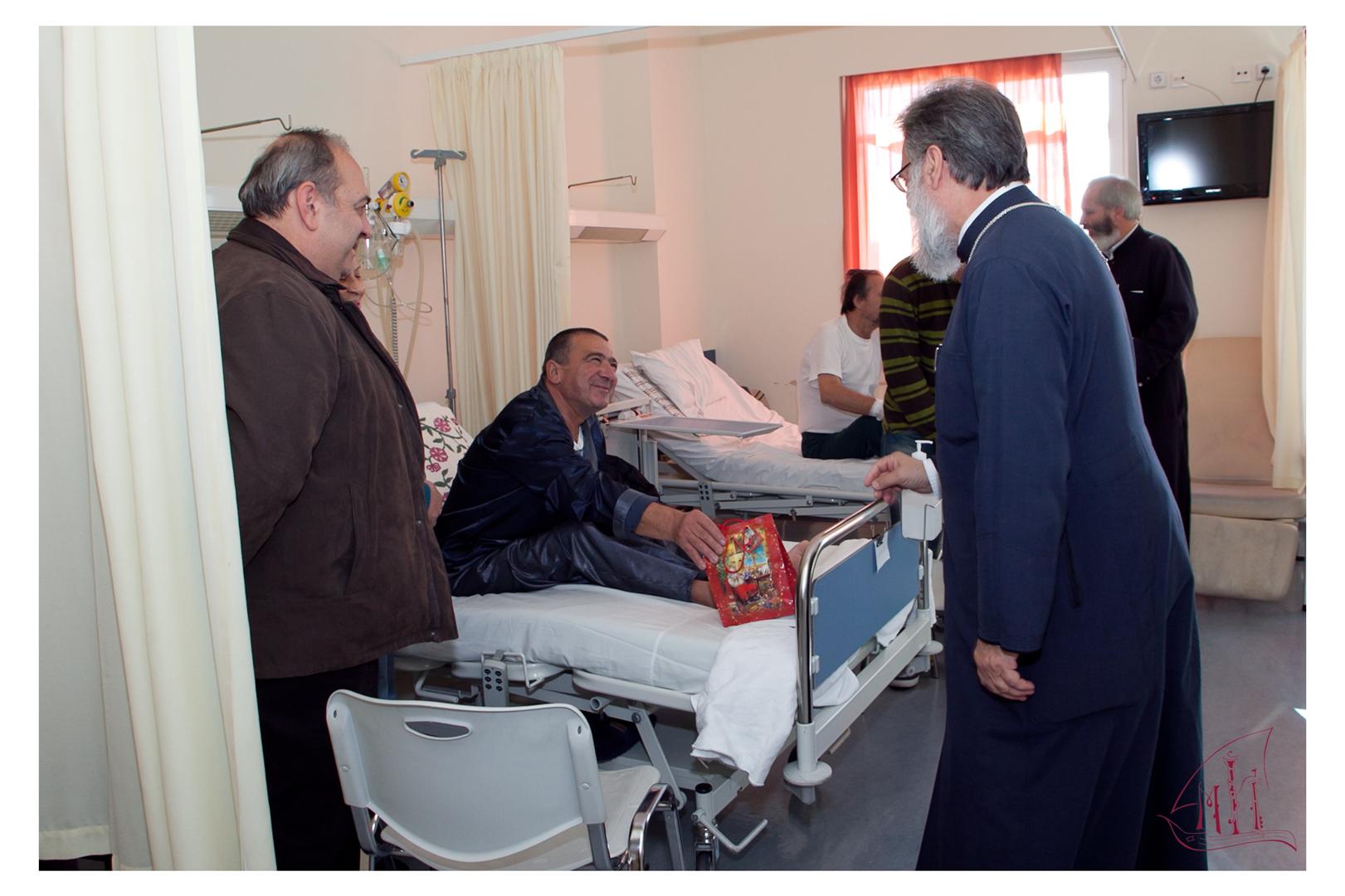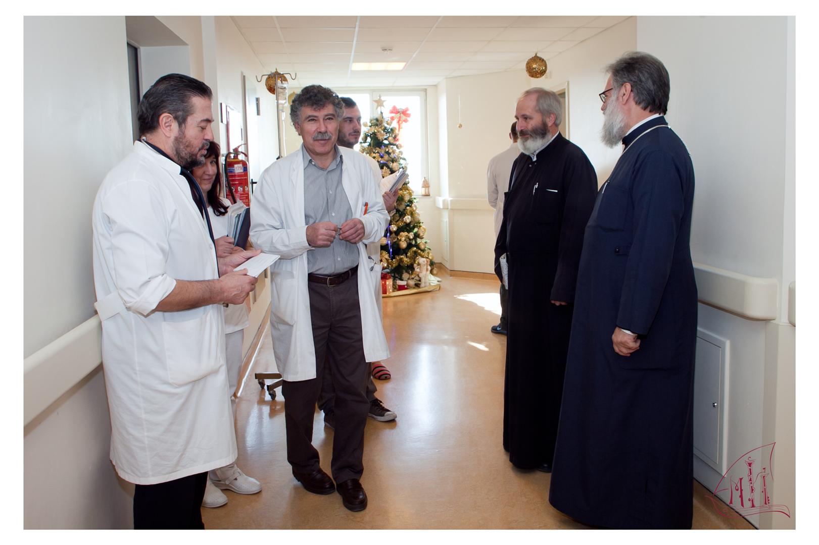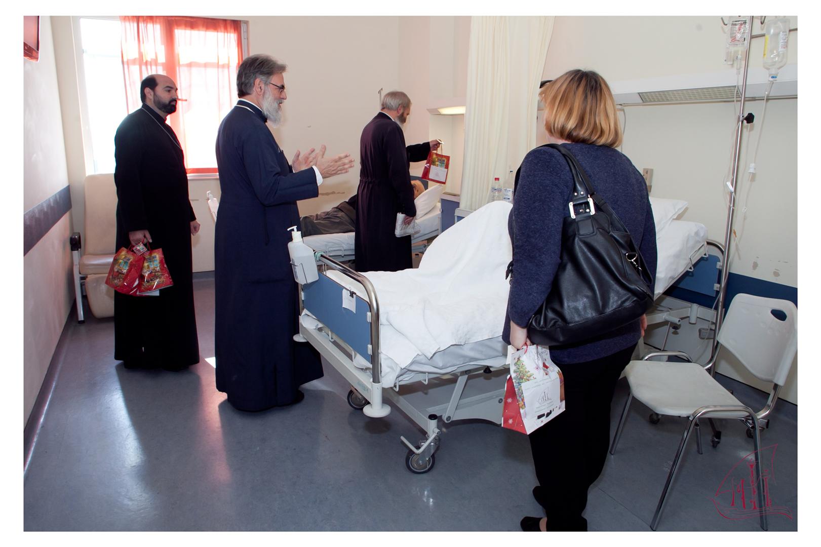 Τον Μητροπολίτη περίμενε ο εφημέριος του νοσοκομείου, π. Ιωσήφ Έκερτ, ο οποίος άοκνα διακονεί στο χώρο αυτό επί 2 και μισό χρόνια. Οι ασθενείς καλοδέχθηκαν τον Σεβασμιώτατο, αντάλλαξαν ευχές και δέχτηκαν τα δώρα από τη Μητρόπολη.