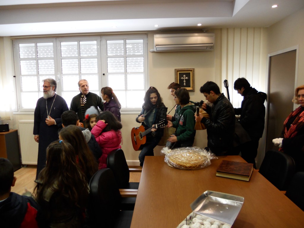 Ο επίσκοπός μας τους δέχτηκε με πολλή χαρά και μετά μοίρασε δώρα σε όλους.