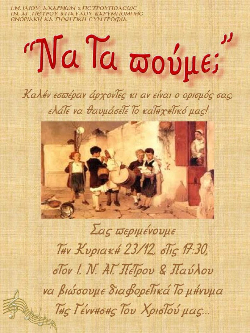 Στην ενορία των Αγ. Αποστόλων Πέτρου και Παύλου Βαρυμπόμπης υπάρχει μία πρωτόγνωρη για την περιοχή δραστηριότητα!