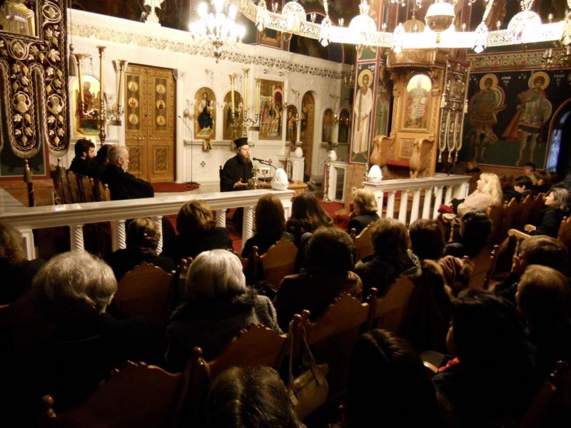 Την Κυριακή 27 Ιανουαρίου 2013 πραγματοποιήθηκε στον ιερό ναό Αγίου Δημητρίου Πετρούπολης ομιλία στο πλαίσιο της σχολής γονέων της ενορίας.