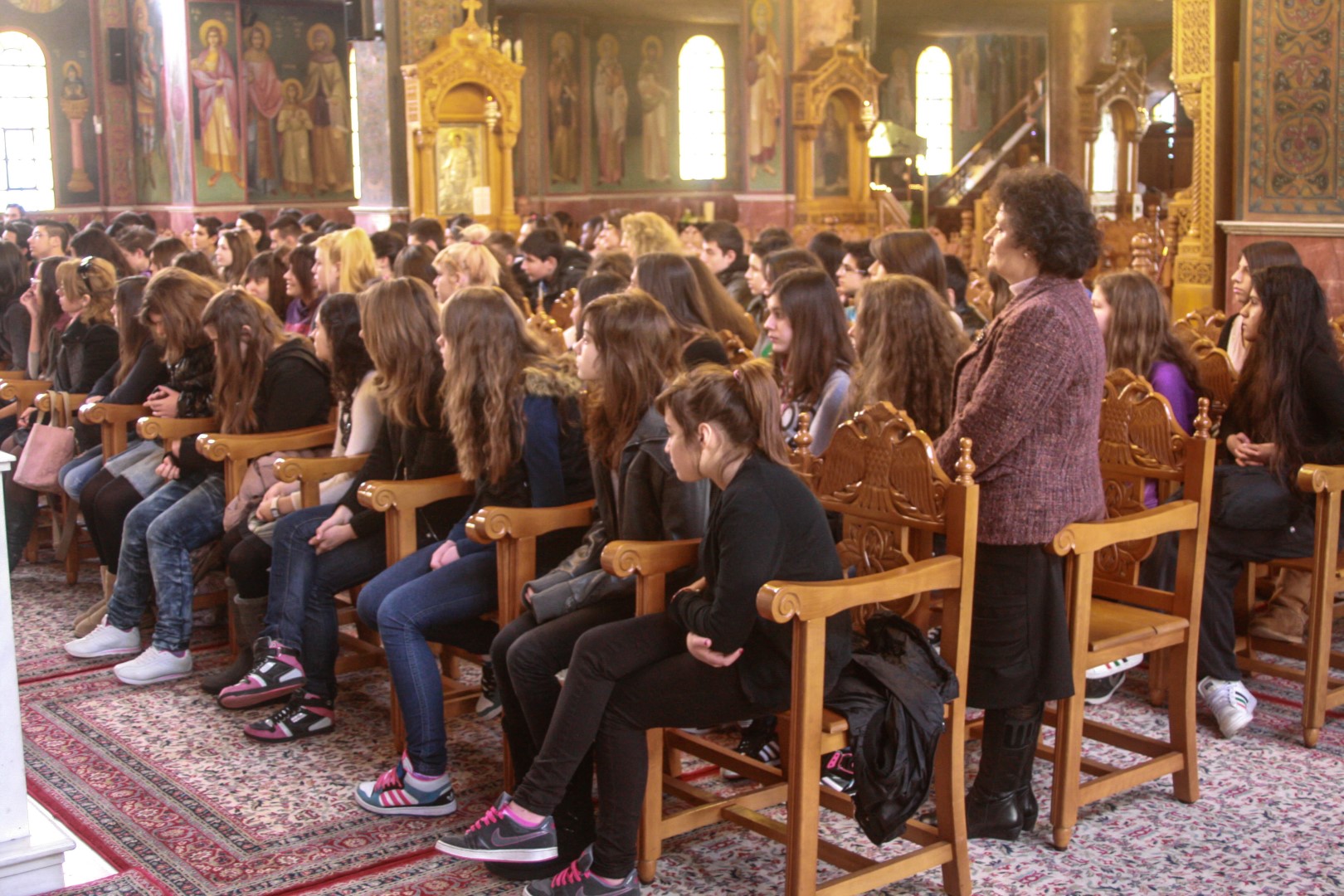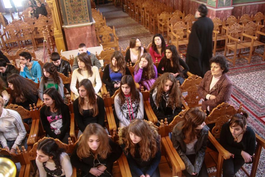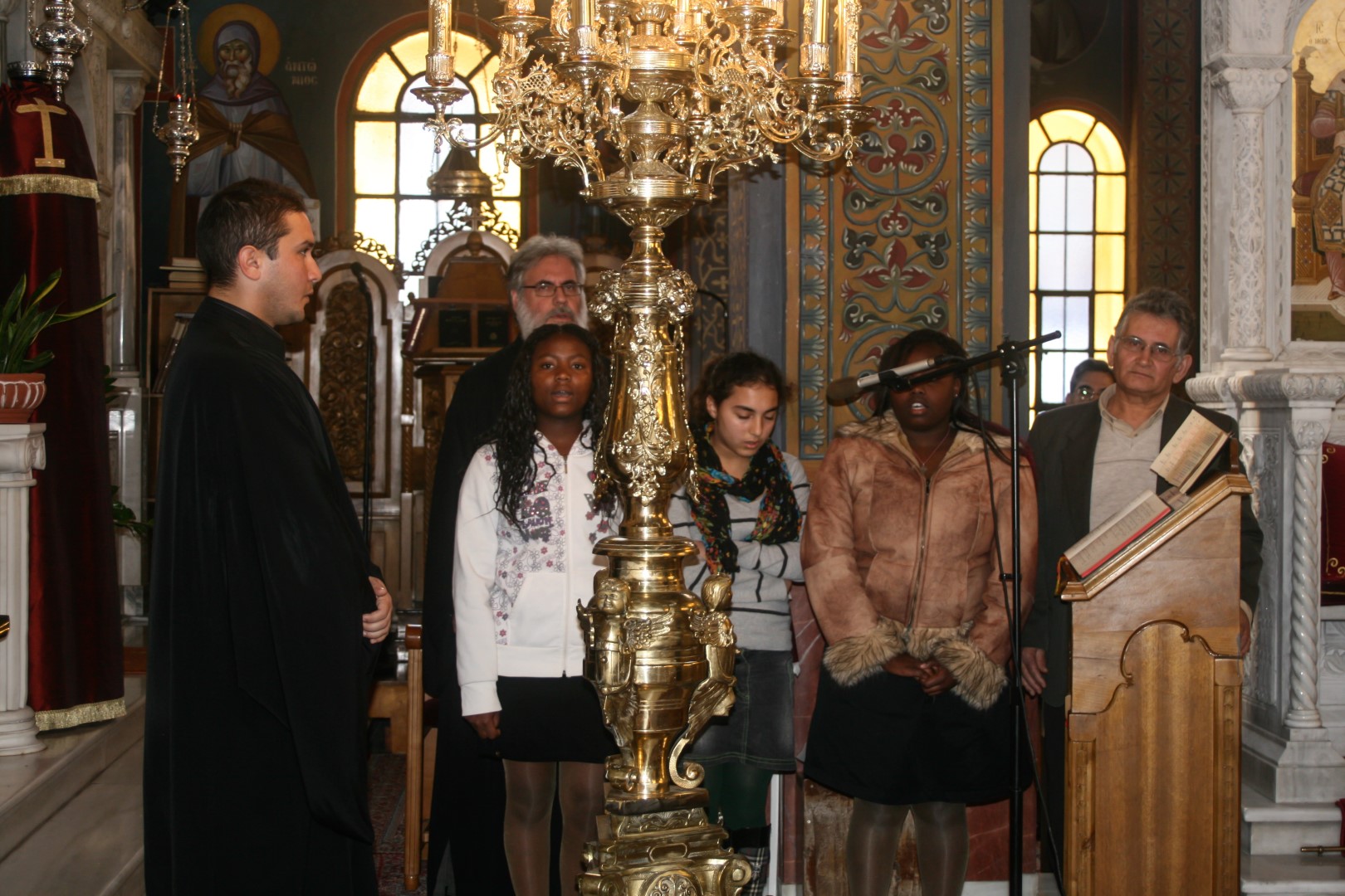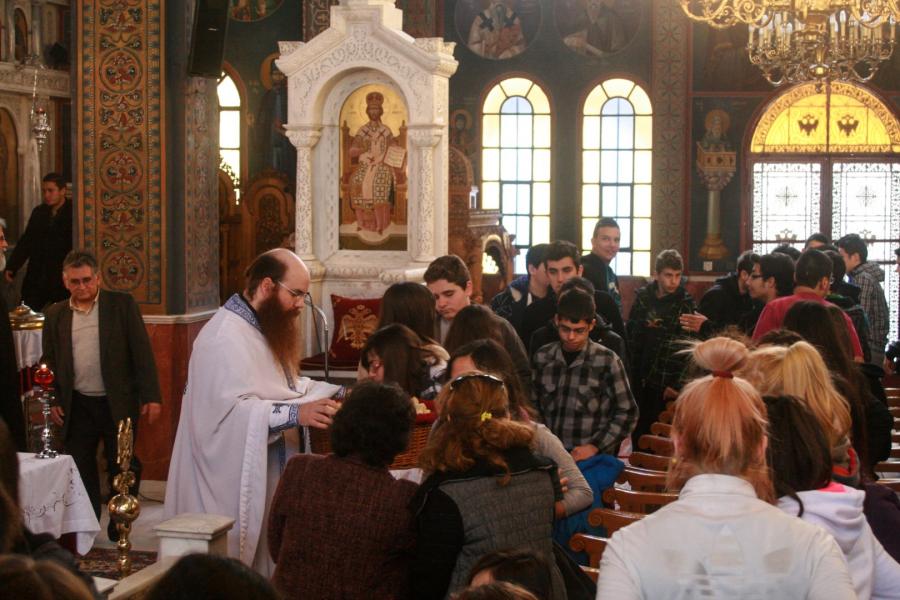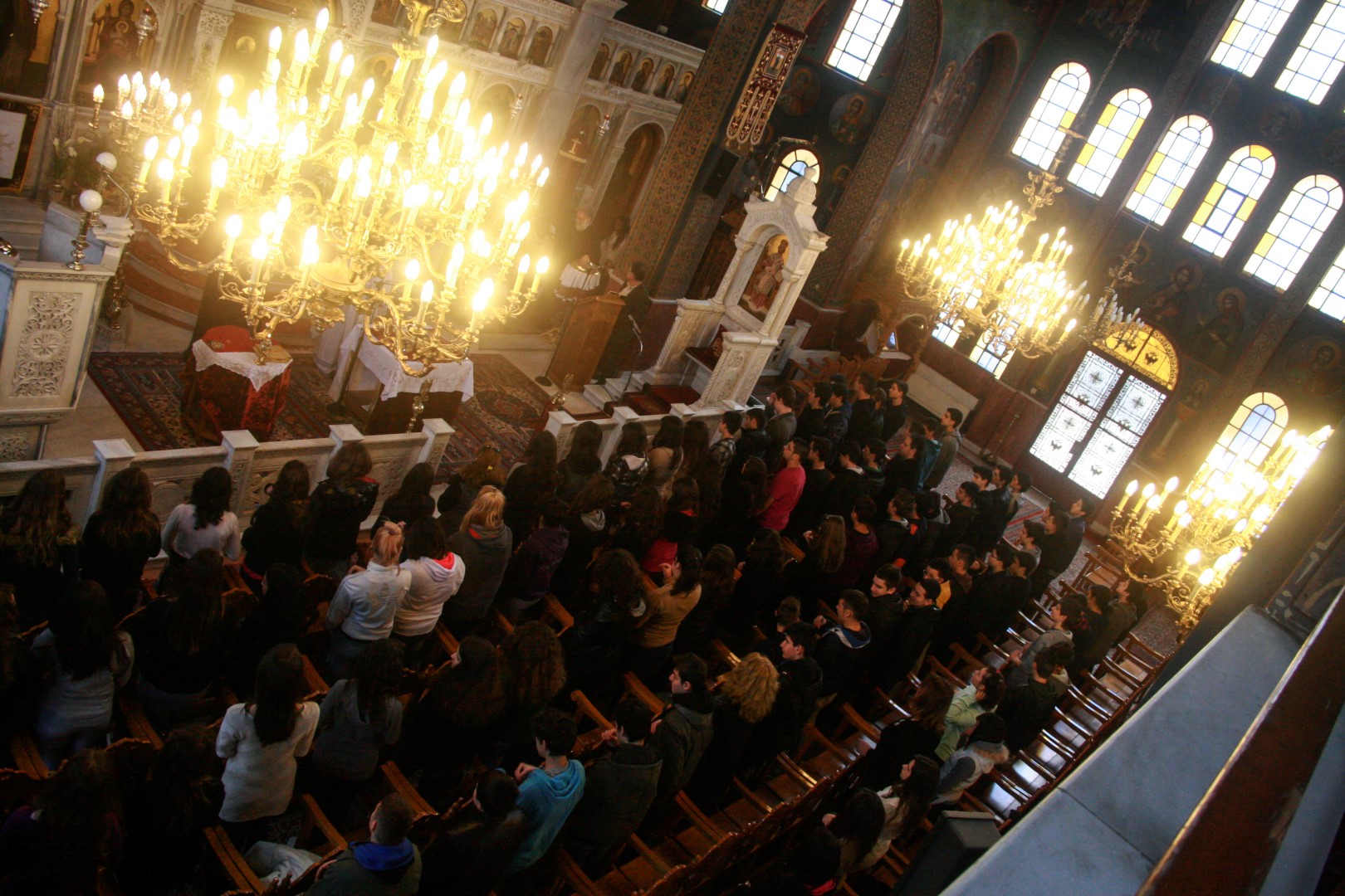 Αξιοσημείωτη είναι η στιγμή που τρεις μαθήτριες έψαλλαν, μετά τον καθαγιασμό των Τιμίων Δώρων, το «Άξιον εστίν».