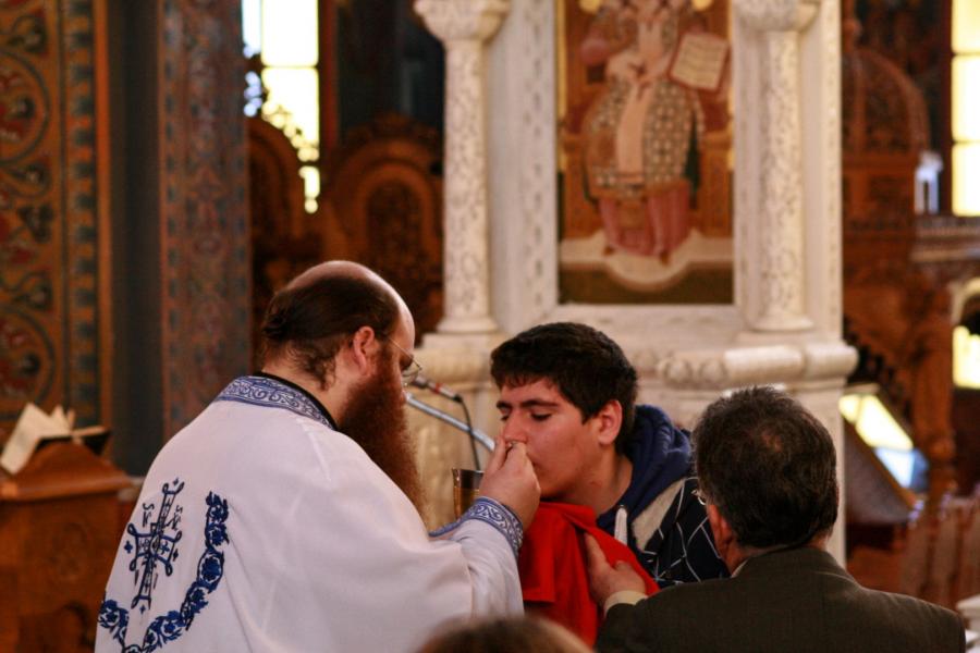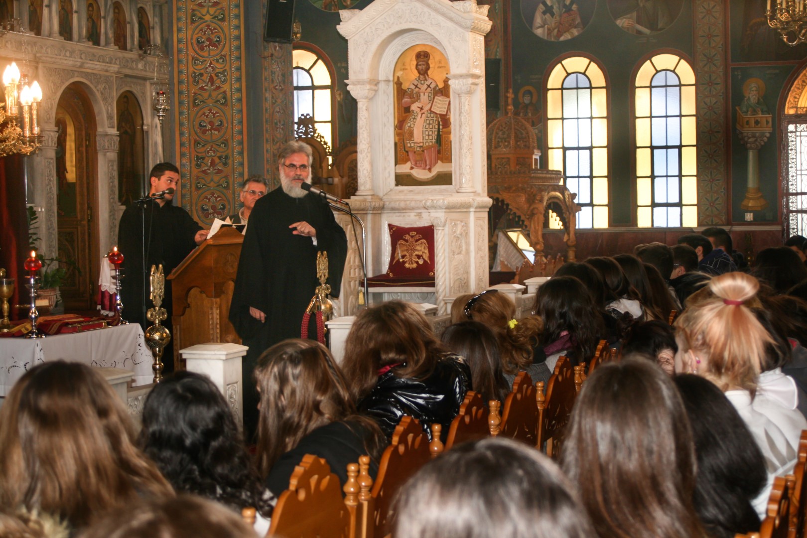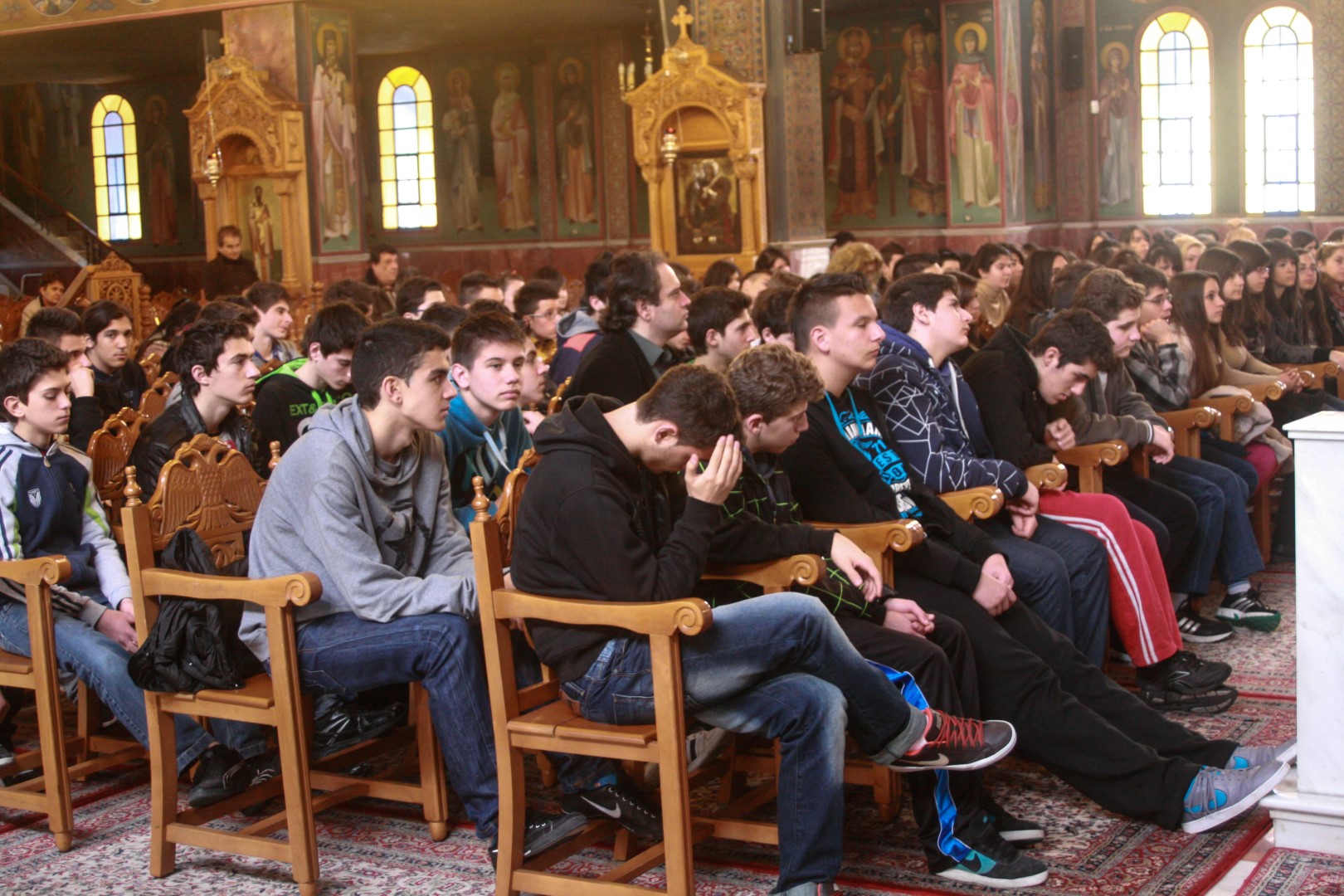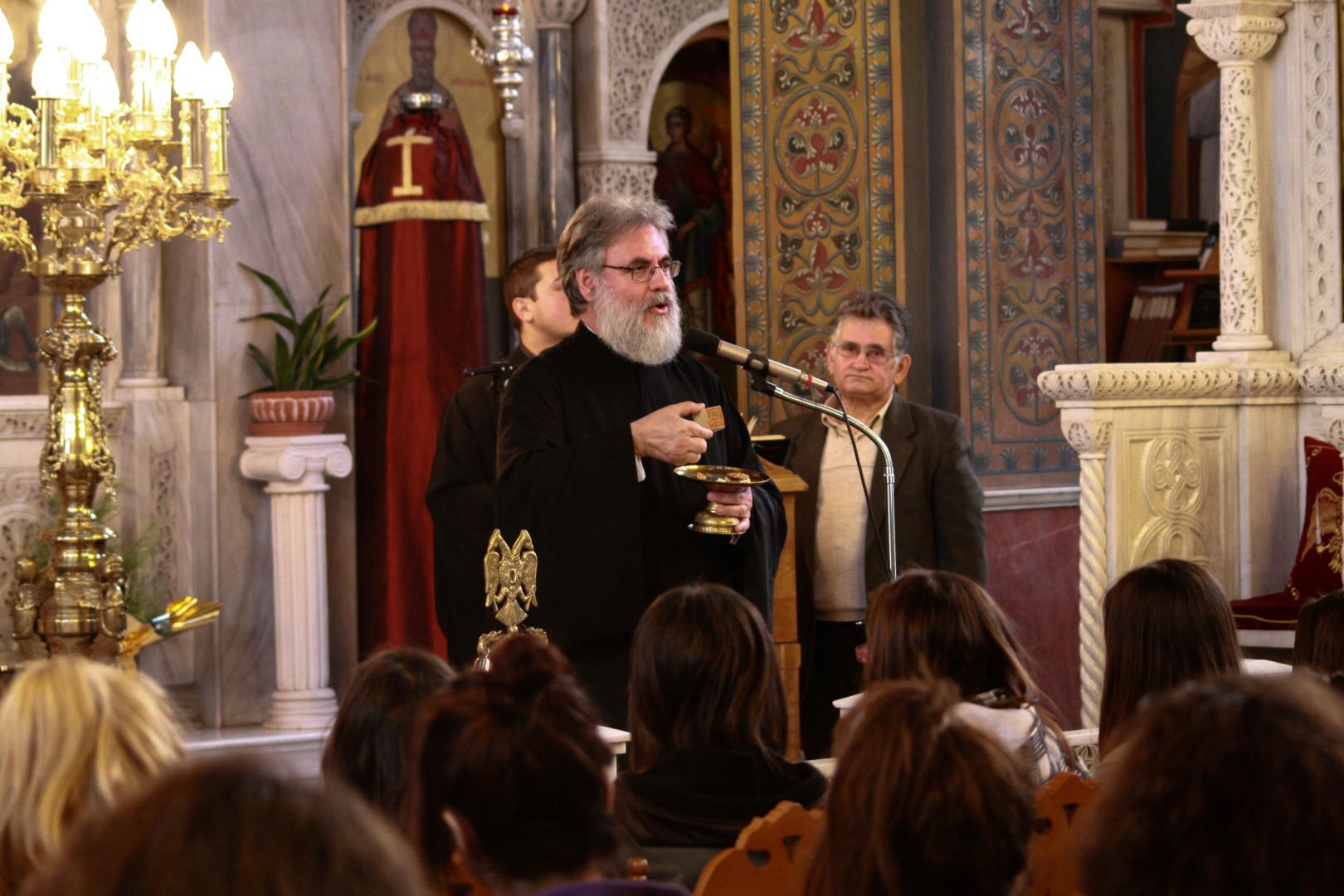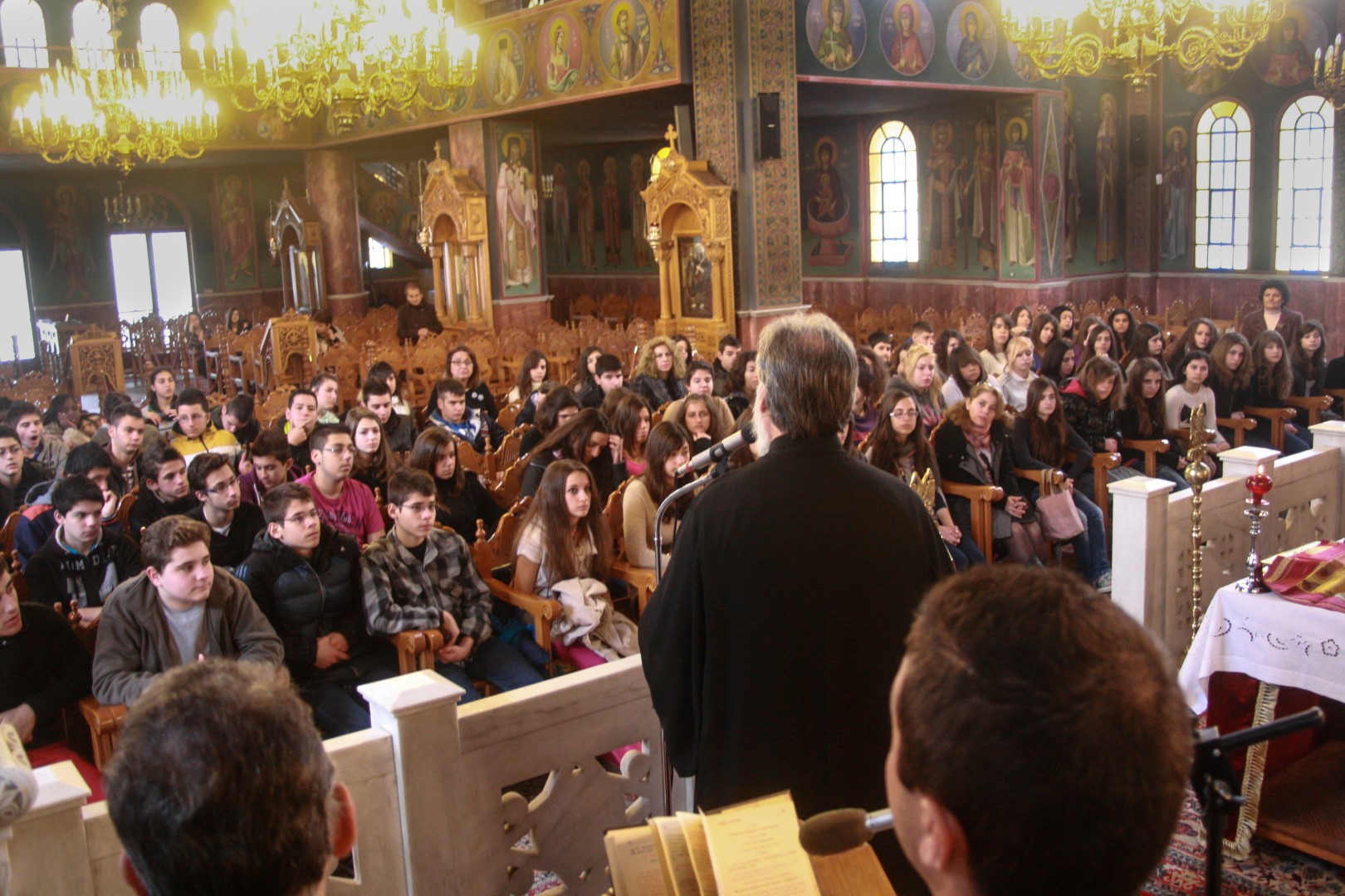 Αξιοσημείωτη είναι η στιγμή που τρεις μαθήτριες έψαλλαν, μετά τον καθαγιασμό των Τιμίων Δώρων, το «Άξιον εστίν».