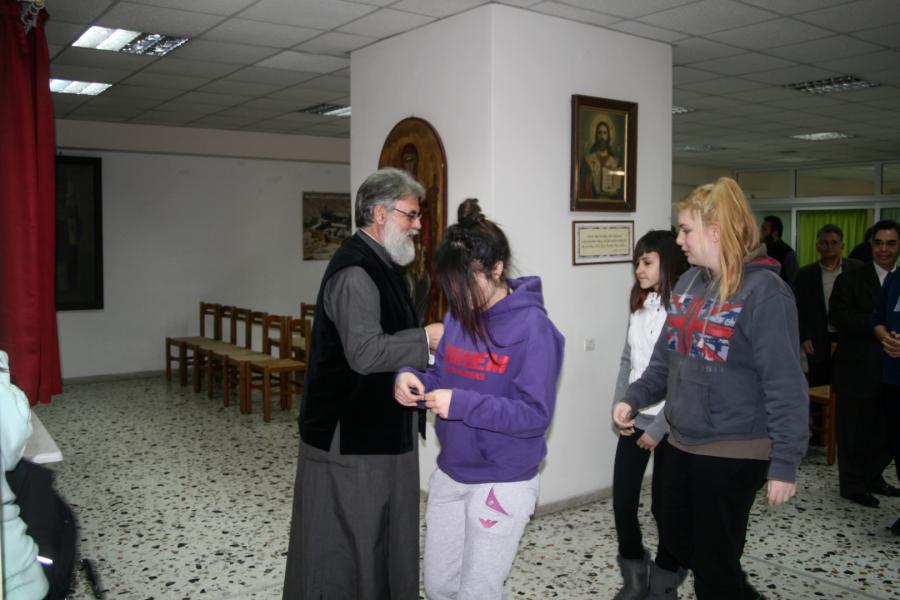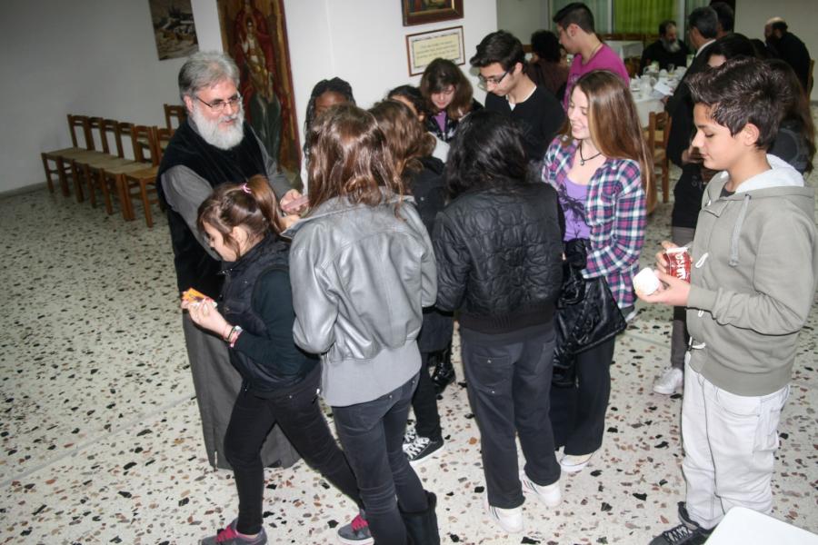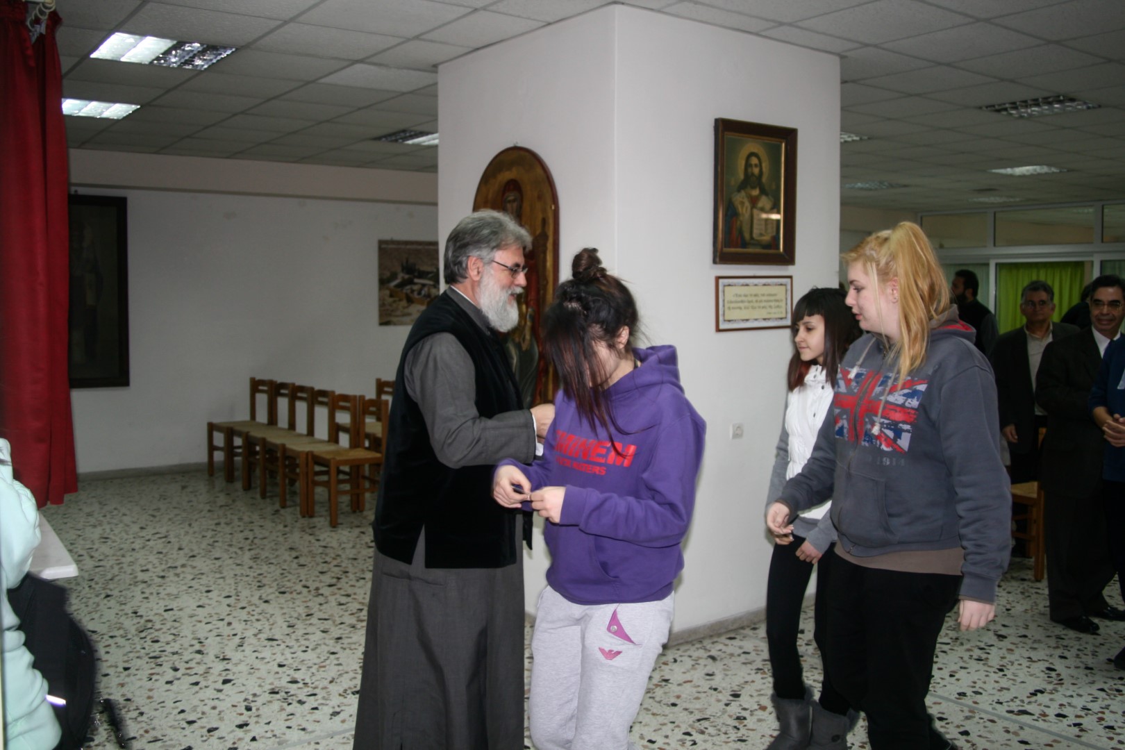 Μετά το πέρας της Λειτουργίας, οι ιερείς του Ι.Ν. Αγίας Βαρβάρας είχαν ετοιμάσει πλούσιο πρωινό για όλους. Μάλιστα, δύο κορίτσια, ως εκπρόσωποι όλων των μαθητών, ευχαρίστησαν ιδιαιτέρως τον Μητροπολίτη μας.