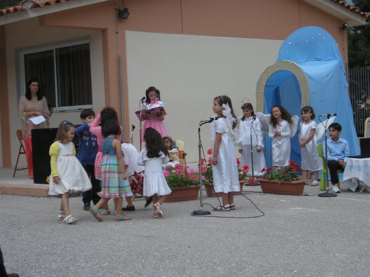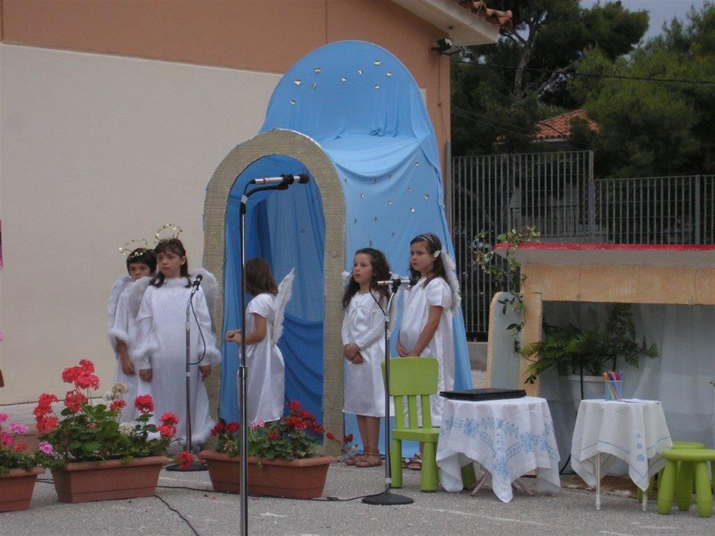Φρεσκάδα, ομορφιά, ζωντάνια, χαμόγελα, αγάπη... πολλή αγάπη, άγγελοι, πουά φούστες, μουσικές, τραγούδια, χορός, συγκίνηση, ευτυχία, ευλογία... πολλή ευλογία, βροχή, ομπρέλες, ζακέτες στο κεφάλι αλλά ακίνητοι όλοι...να μη χαλάσει το όνειρο, το όνειρο των παιδιών, η προσπάθειά τους, η χαρά τους... και ήταν όλα τους υπέροχα!!!